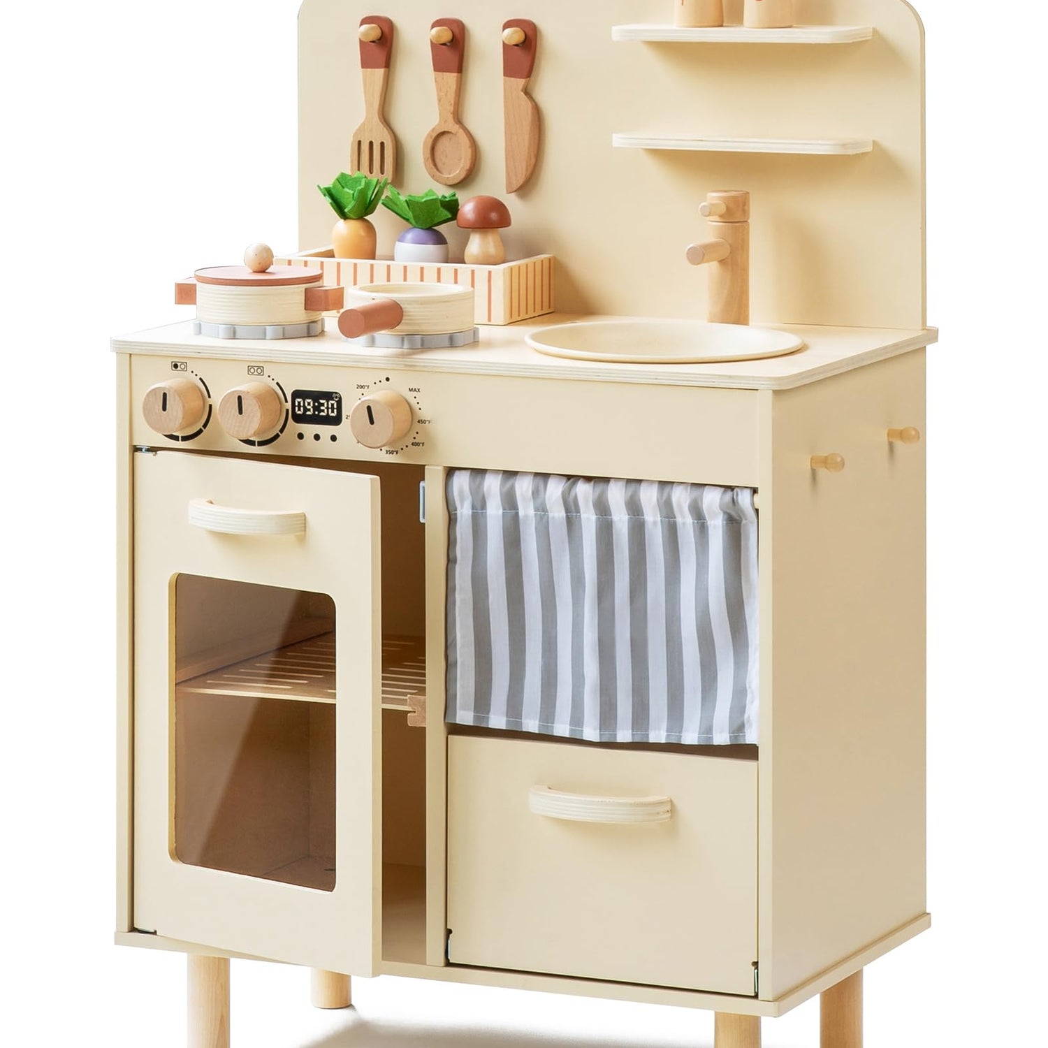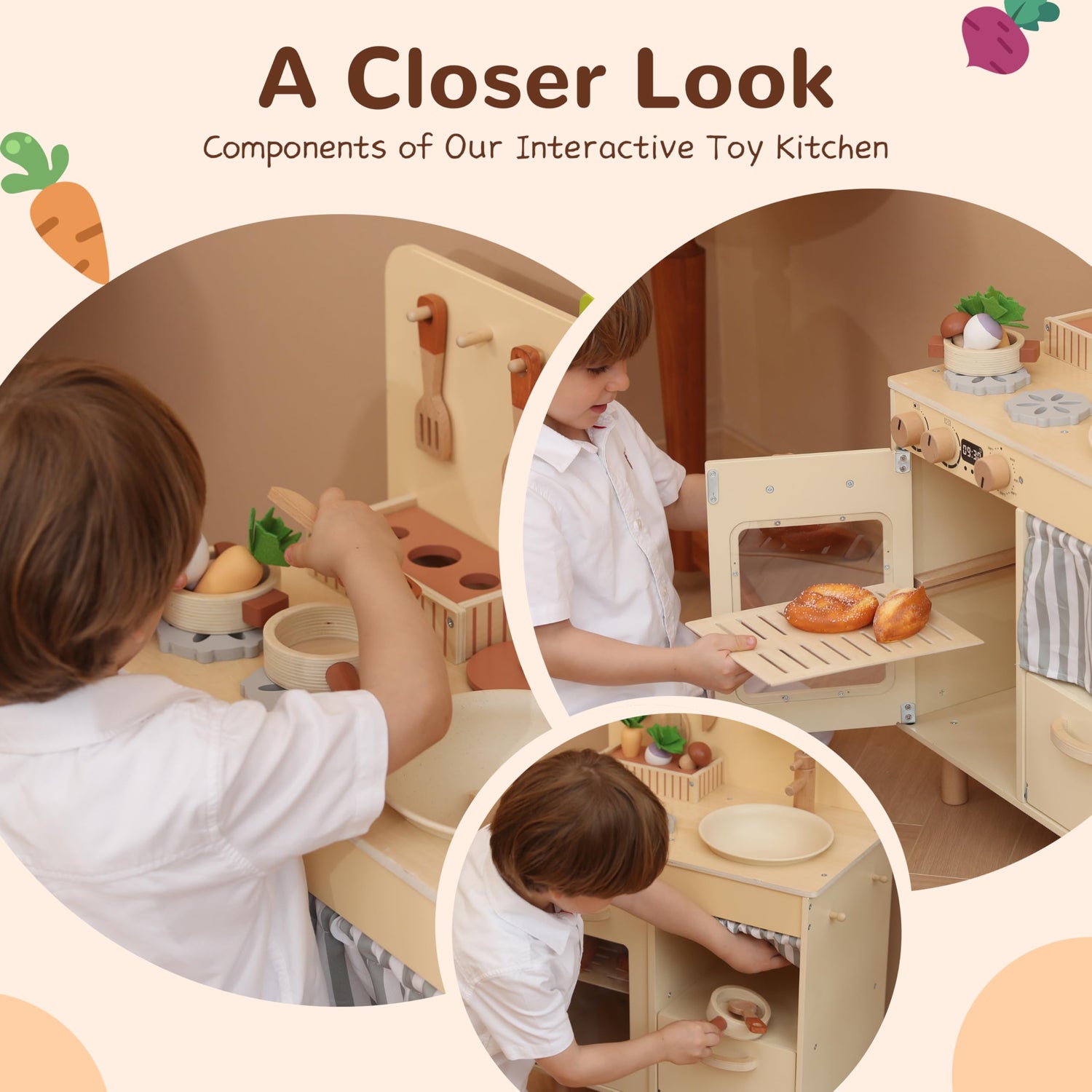 Leeshyah Play Kitchen for Kids, Classic Wooden Kitchen Playset with Food Accessories Set Ideal for Creative Pretend Play, Suitable for Toddlers, Girls & Boys Ages 3+