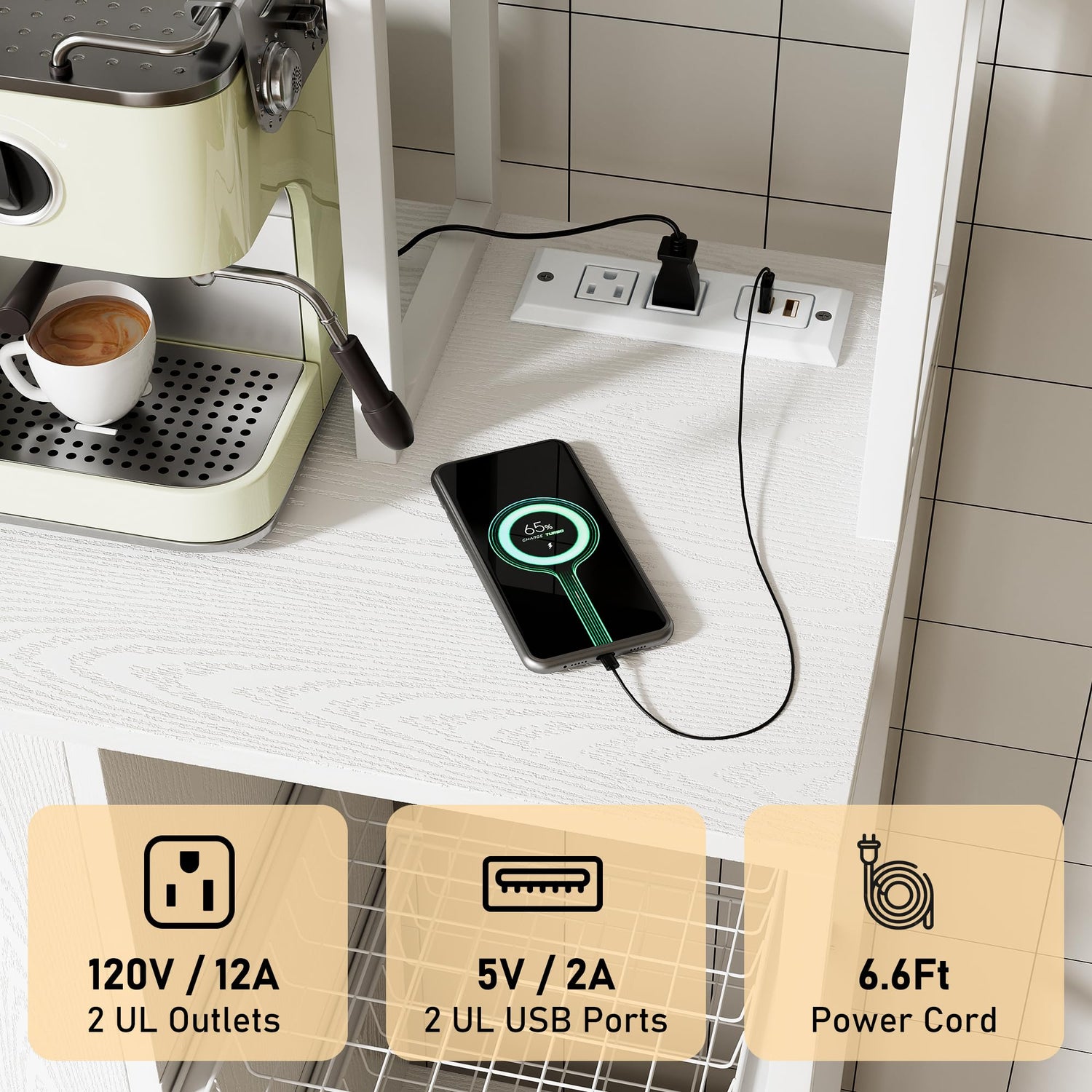 - Built‑In Charging Station for Your Bakers Rack with Power Outlet—— Transform your kitchen bakers rack into a centralized charging hub—power up your coffee maker, toaster, or phone without messy extension cords.