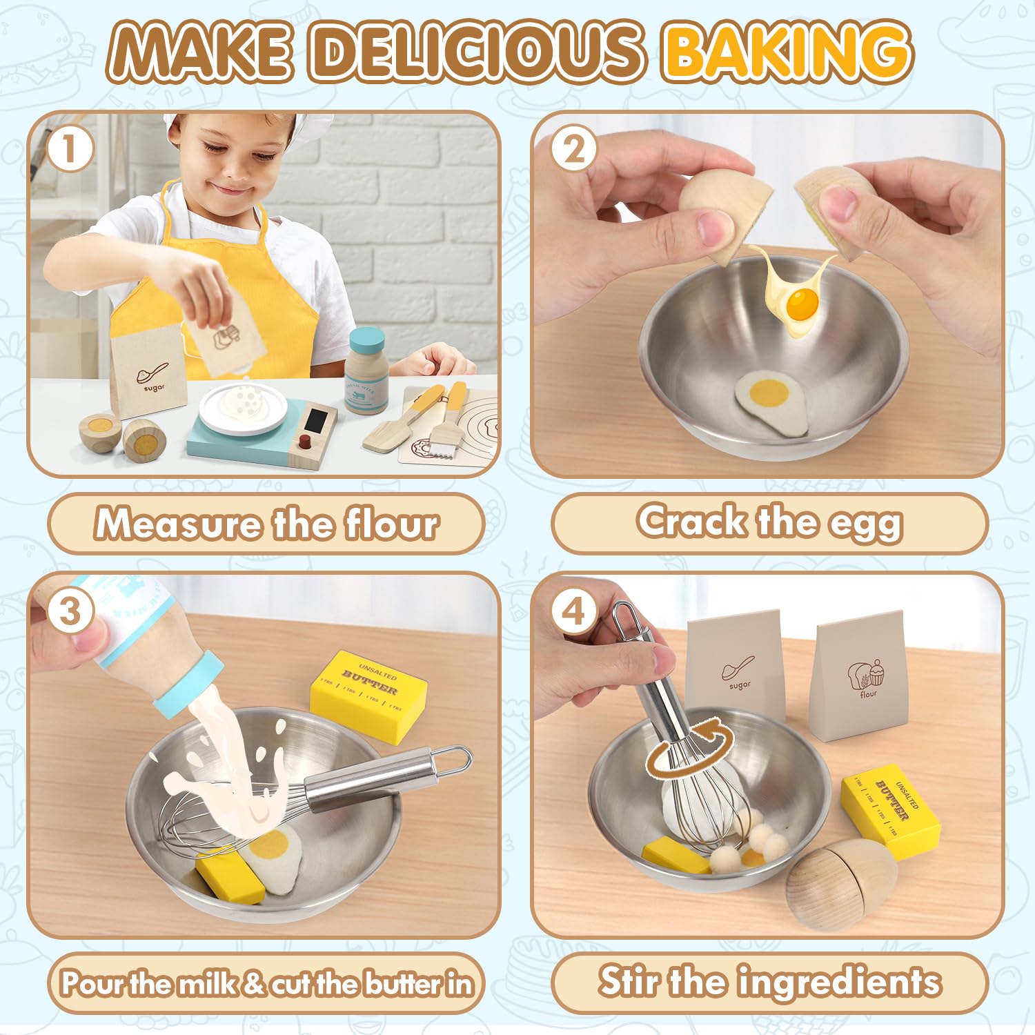 - 【Safe & Sturdy】Our kitchen play baking set is made of natural wood, safe and sturdy, have no sharp edges, are lead-free and odor-free, suitable for daily play, and are specially designed for children over 3 years old.