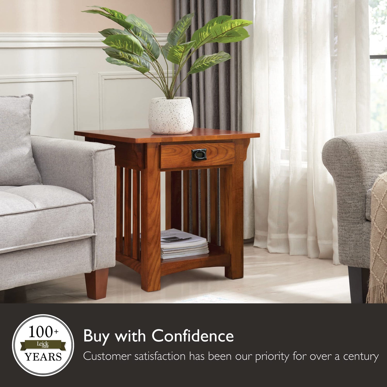 Leick Home 8207 Mission Impeccable End Table with Drawer, Made with Solid Wood, Side Table for Living Room, Bedroom, Medium Oak Finish, Russet
