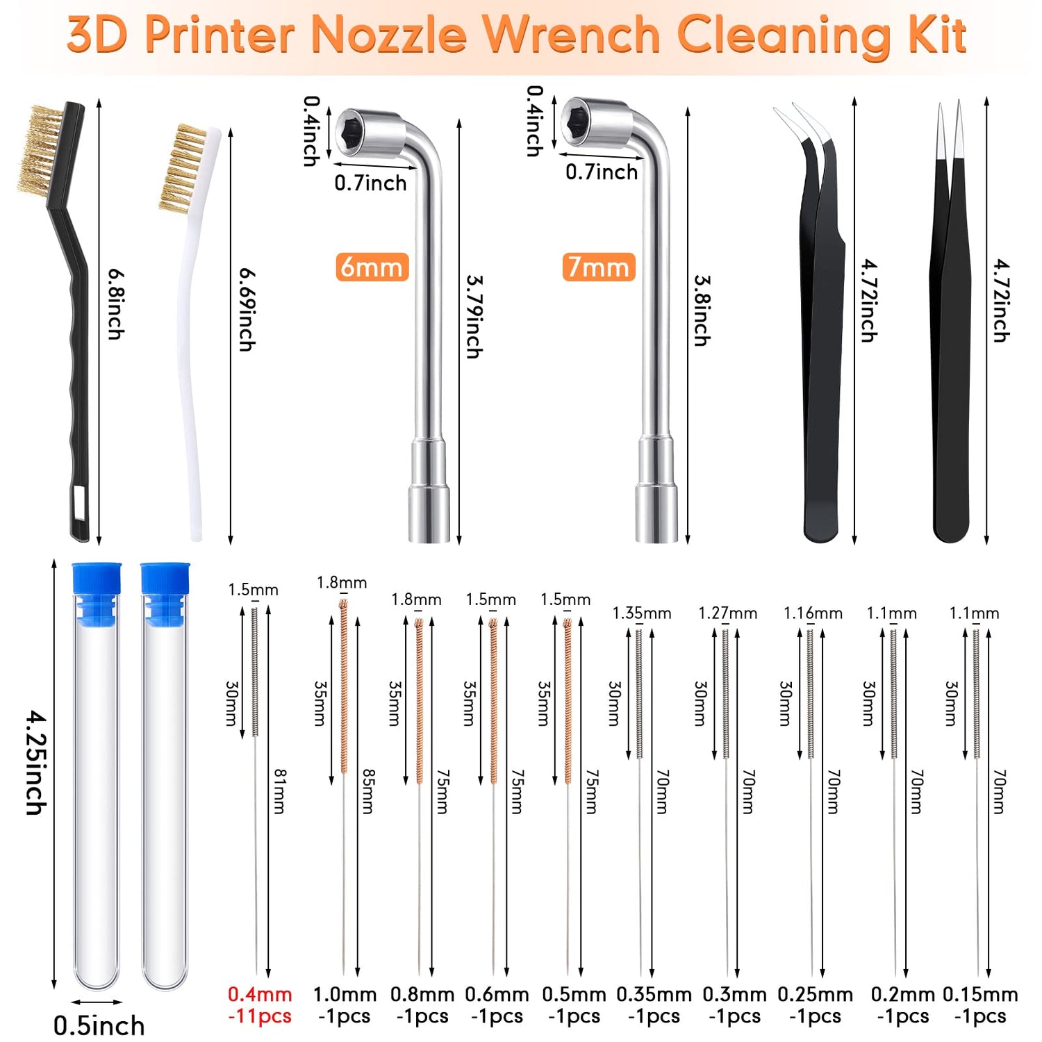 - How to Use: before using the 3D printer cleaning kit, it is recommended to heat the print head to more than 200 degrees (be careful to keep burns), then insert and remove the cleaning steel pin from the discharge port, repeat the previous step until the printer discharges normally