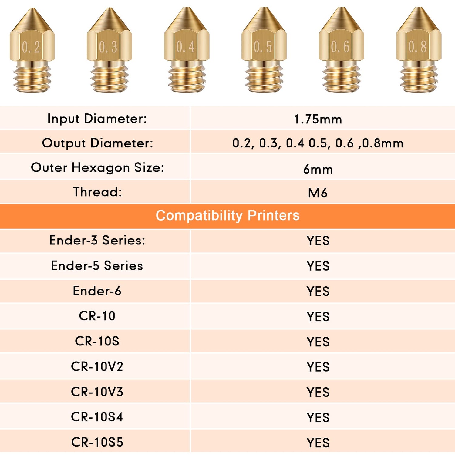 - Wide Compatibility: these MK8 extruder nozzles are compatible with 3D printer Makerbot Creality CR-10, MK8 Makerbot Reprap Prusa I3, also compatible with 1.75 mm PLA ABS 3D printers