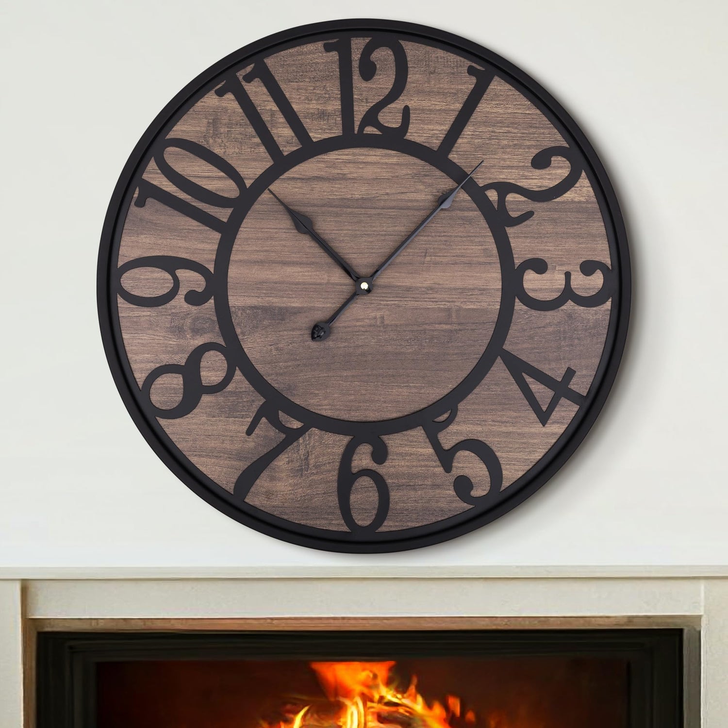- [Easy to Read] Round black metal number, wood wall clock is easy to read bold numbers on the surface with white hands. Make this oversized metal clock the focal point of any room! Also, perfect for decorating any home decoration style.