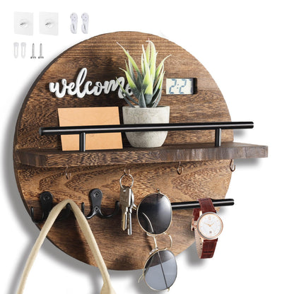 LEIRUOTM Key Holder for Wall, Key and Mail Holder Organizer with - Key Holder Wall Mount - Round Wooden Rustic Home Decor for Entryway, Mudroom, Hallway, Kitchen Office (Brown)