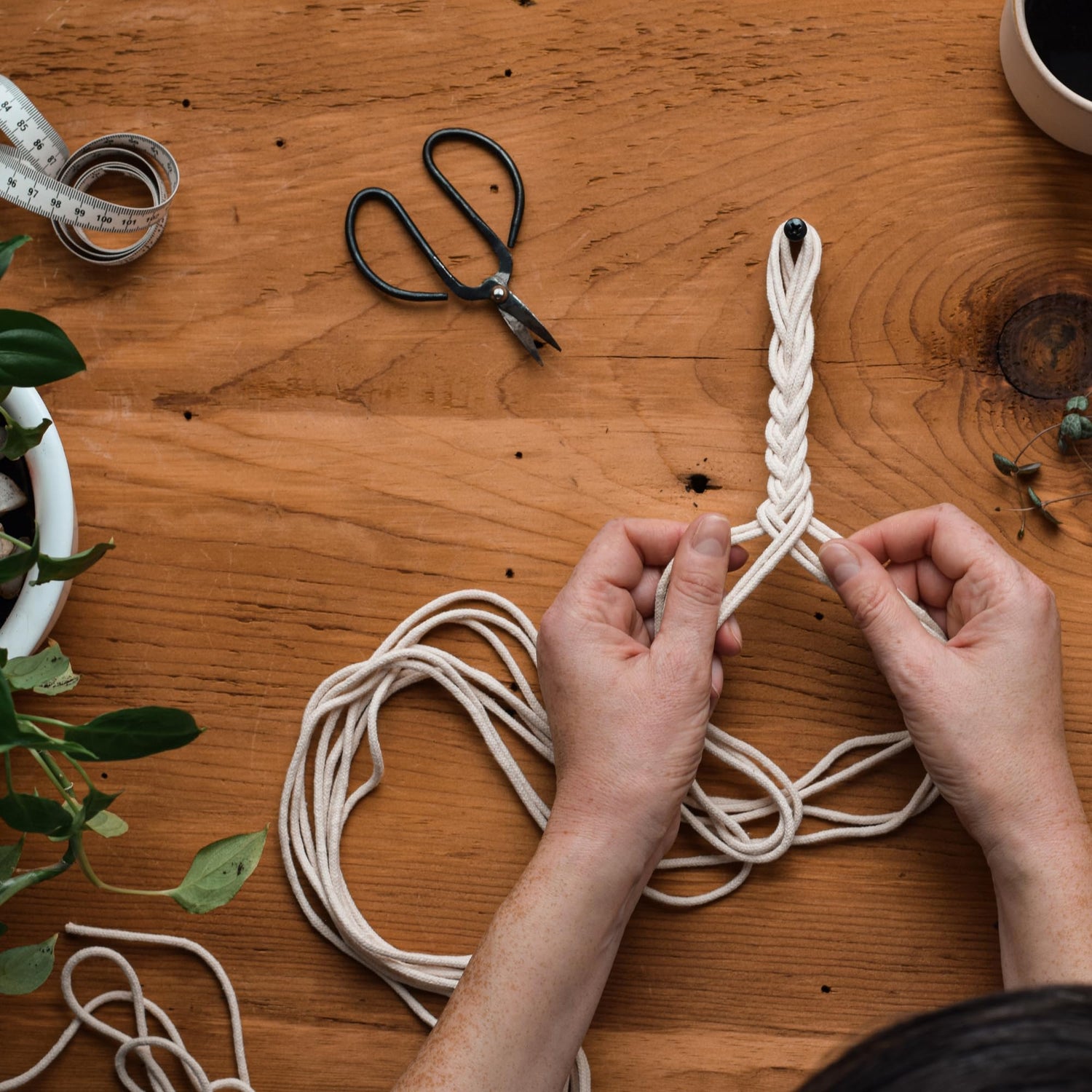 - Macrame starter kit for adults includes everything you need; cord, wood ring, and instructions. Makes one macrame plant pouch measuring approximately 20".