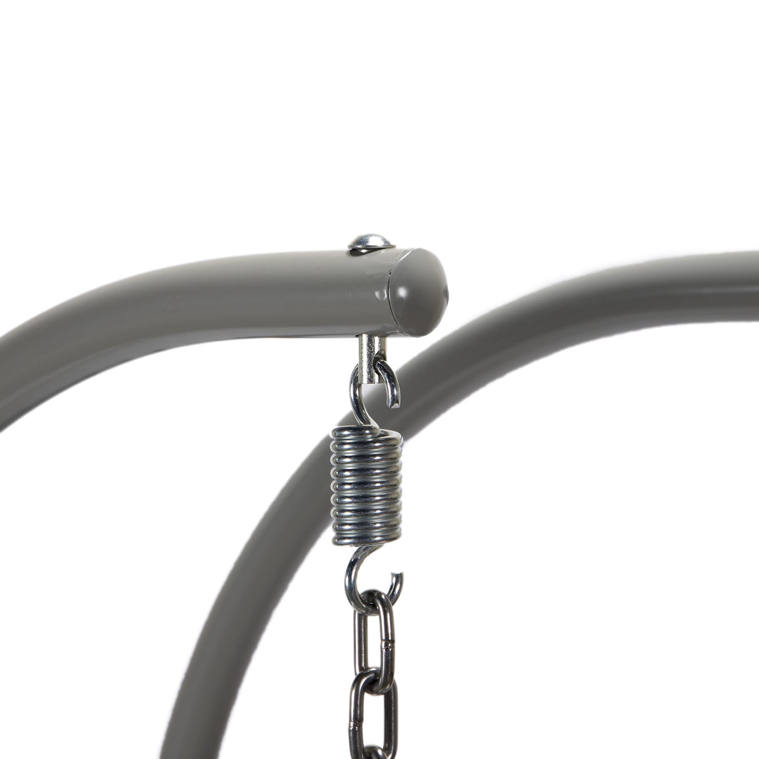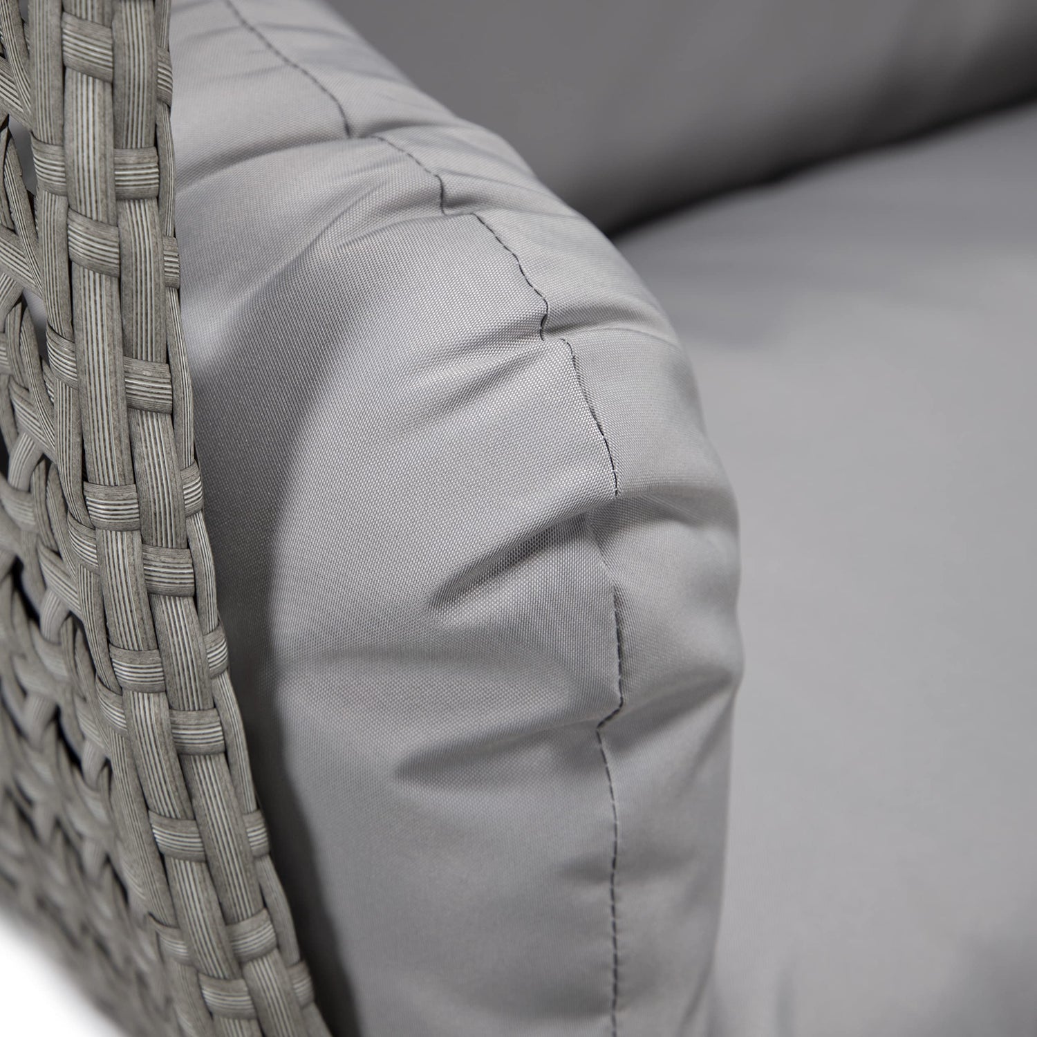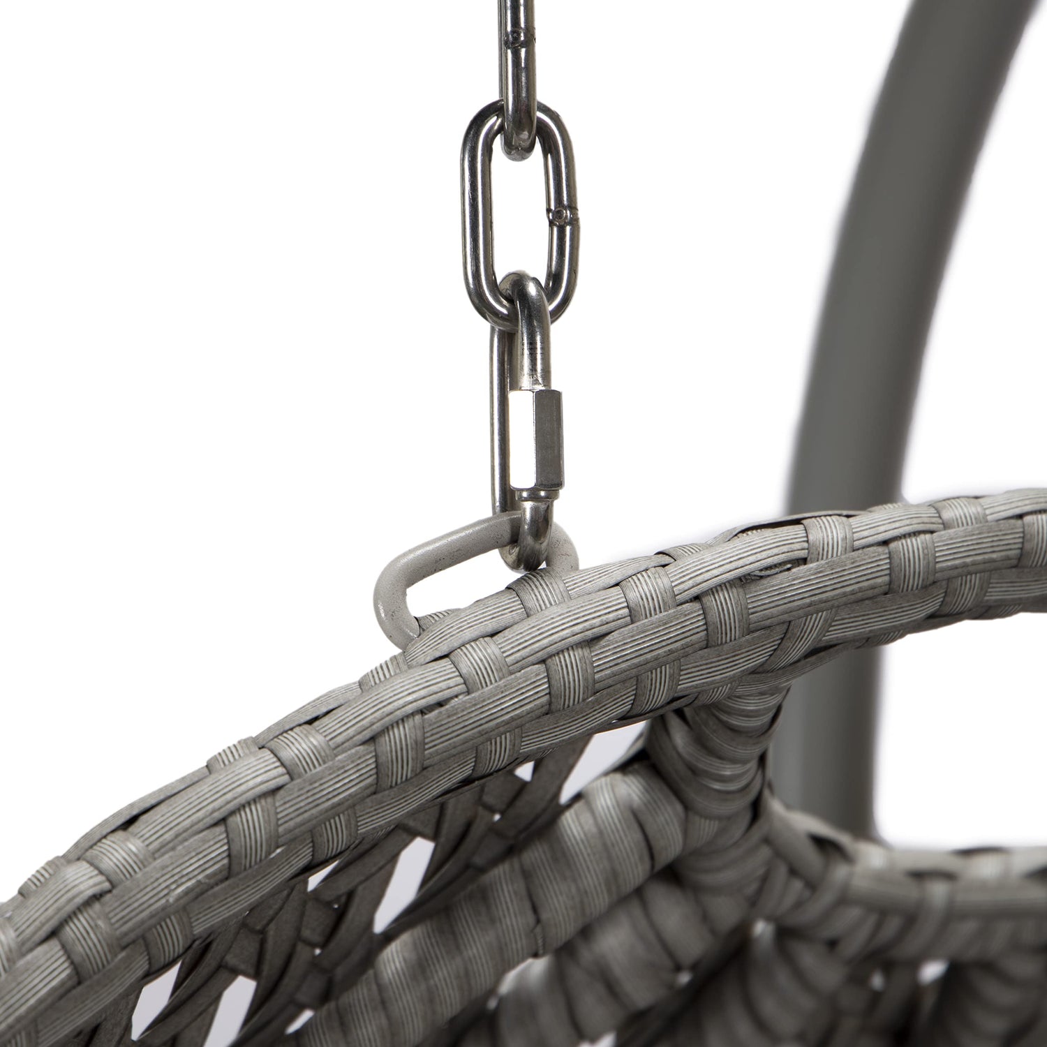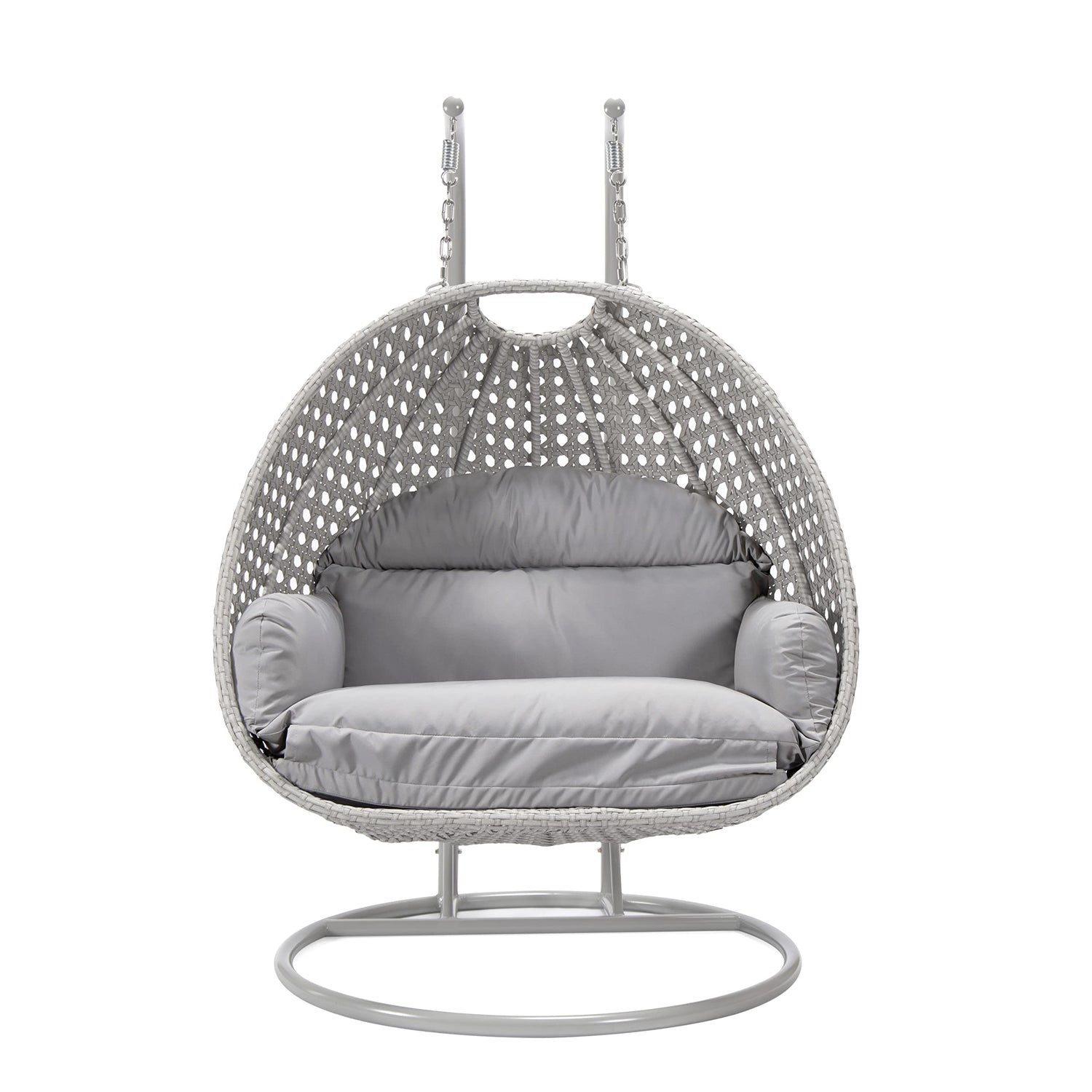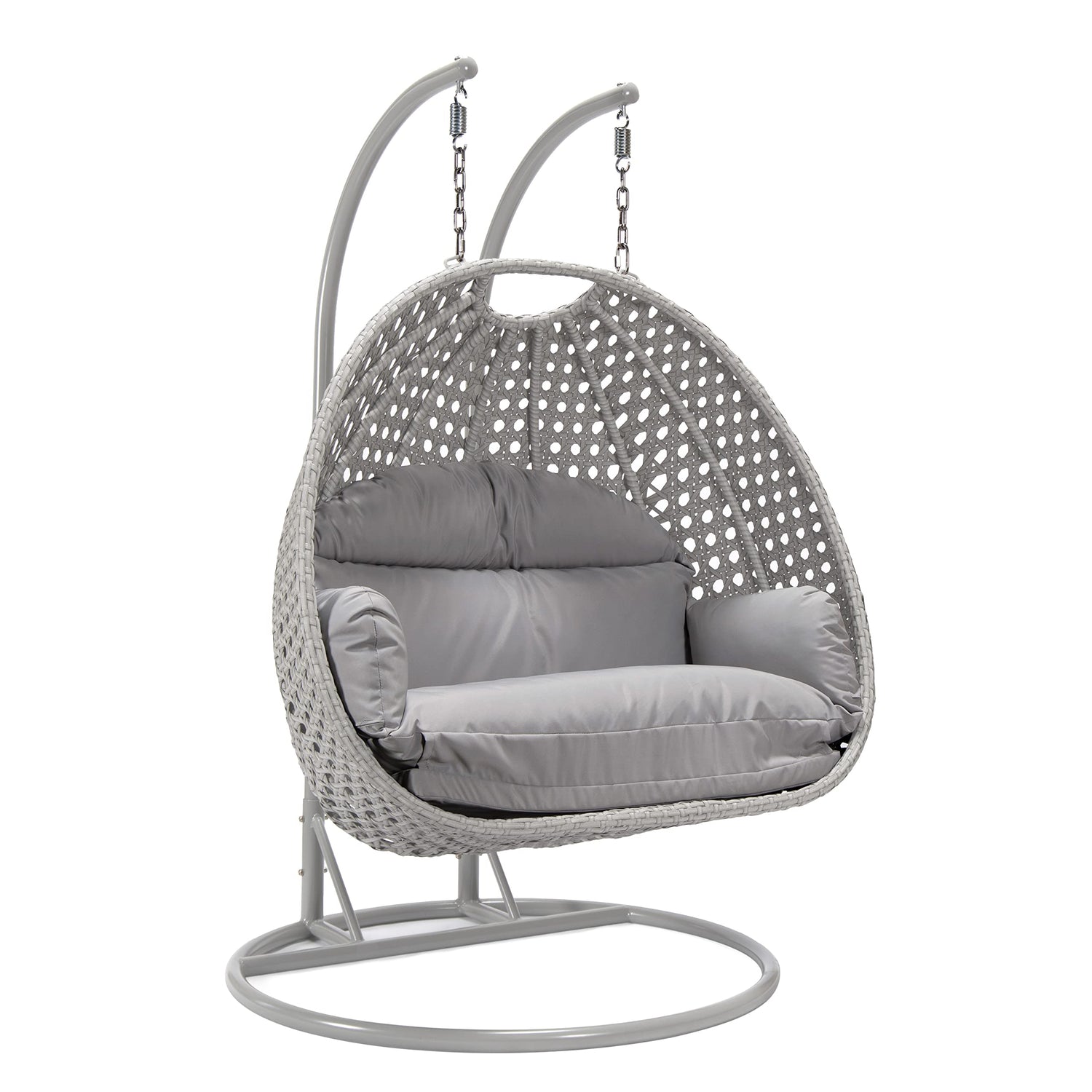LeisureMod Light Gray Wicker 2-Person Patio Hanging Double Egg Swing Chair with Stand & Cushions for Indoor Outdoor Patio Garden Light Grey