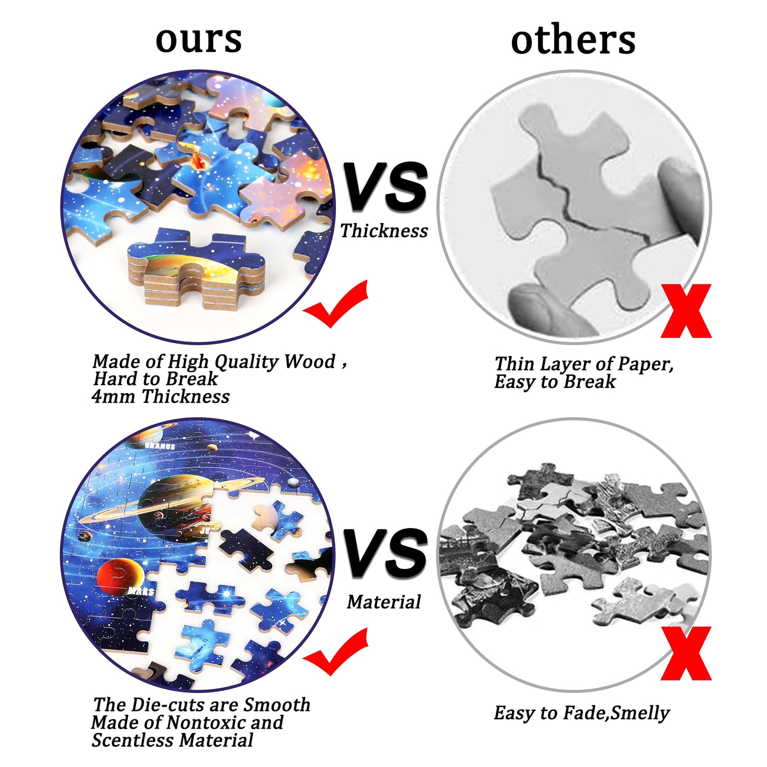 - High Quality Material-- The Puzzle Are Made of Nontoxic And Tasteless Material,Vibrant and Clear Surface,Smooth and Easy to Clean.and We Using A Precision Cutting Technique That Assures Every Piece Will Fit Perfectly,Sturdy and Safe.