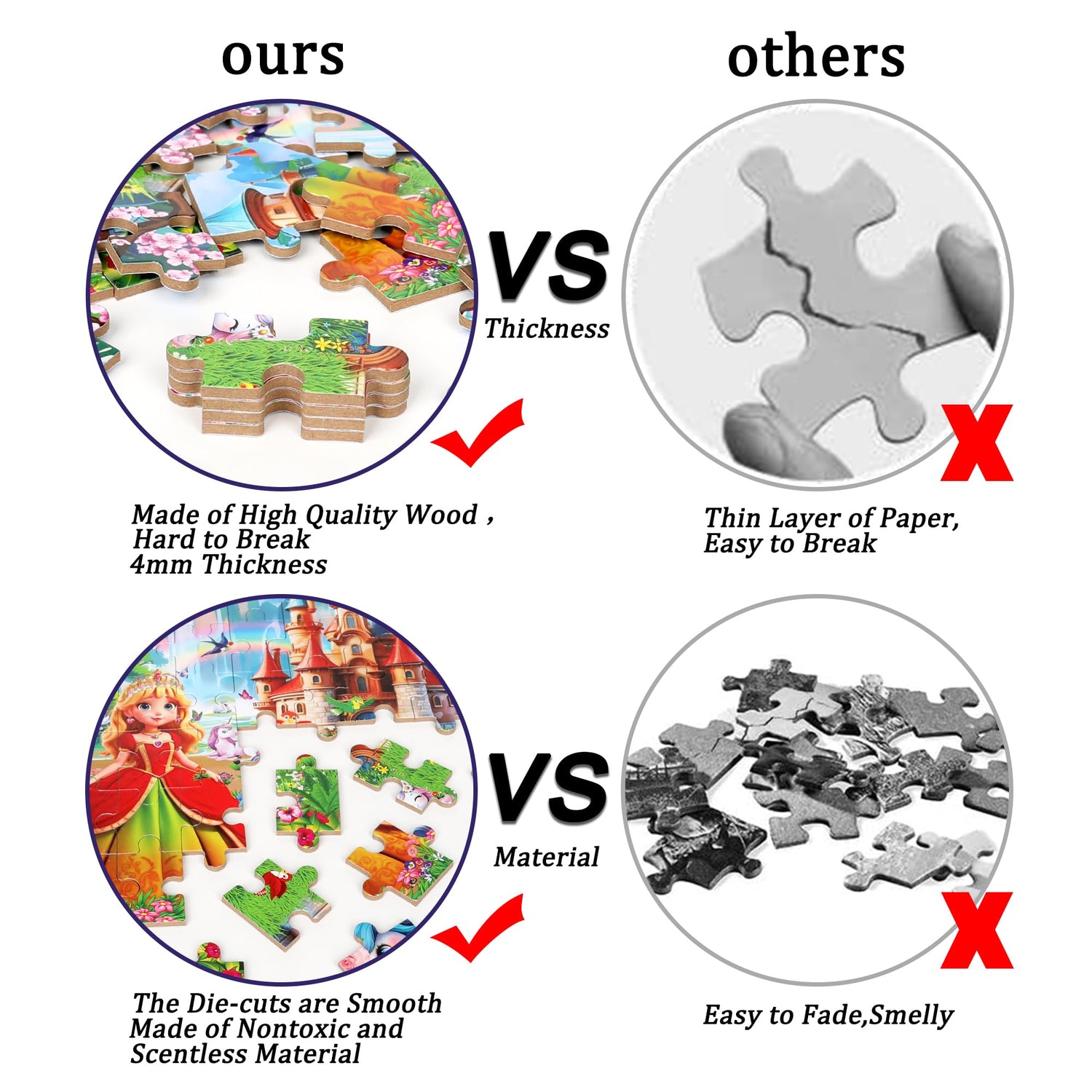 - High Quality Material-- The Princess and Unicorns Puzzle Are Made of Nontoxic And Tasteless Material,Vibrant and Clear Surface,Smooth and Easy to Clean.and We Using A Precision Cutting Technique That Assures Every Piece Will Fit Perfectly,Sturdy and Safe.