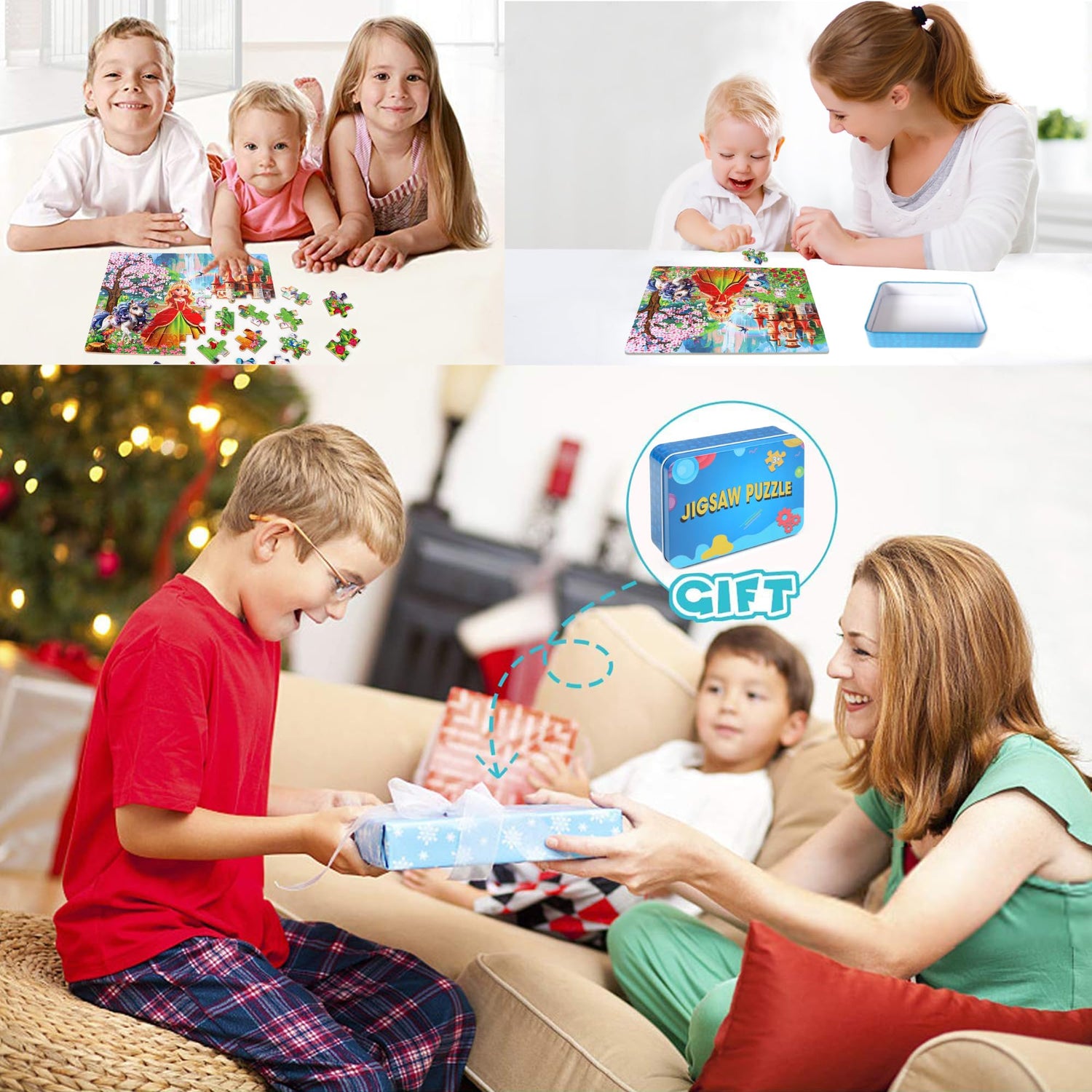 - 60 Pieces Puzzles for Kids--The Princess and Unicorns Jigsaw Puzzles Come with A Tin Box, Convenient to Storage and Not Easy to Lose Puzzles Piece.playing Jigsaw Puzzles Can Stimulate Children's Reasoning And Thinking Skills And Improve Hand-eye Coordination, And Improve Children's Frustration Tolerance.