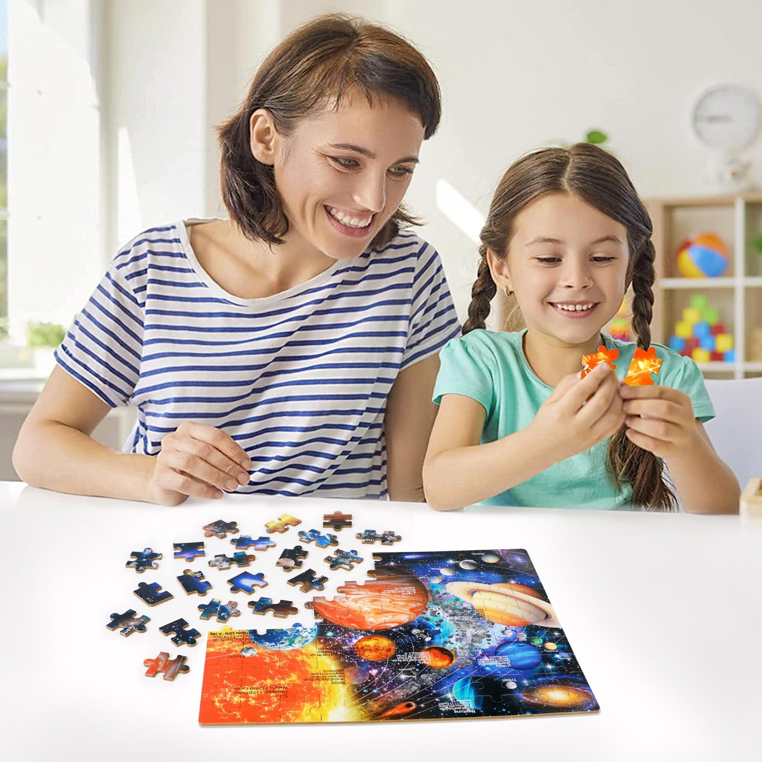 - High Quality Materials: The Space Star puzzles are printed by eco-friendly oil, original hand-painted pictures, with bright and delicate colors, providing you with an excellent visual and high aesthetic experience. The rounded edge is safe for your little one. The puzzle pieces are carefully cut so that each piece fits together nicely.