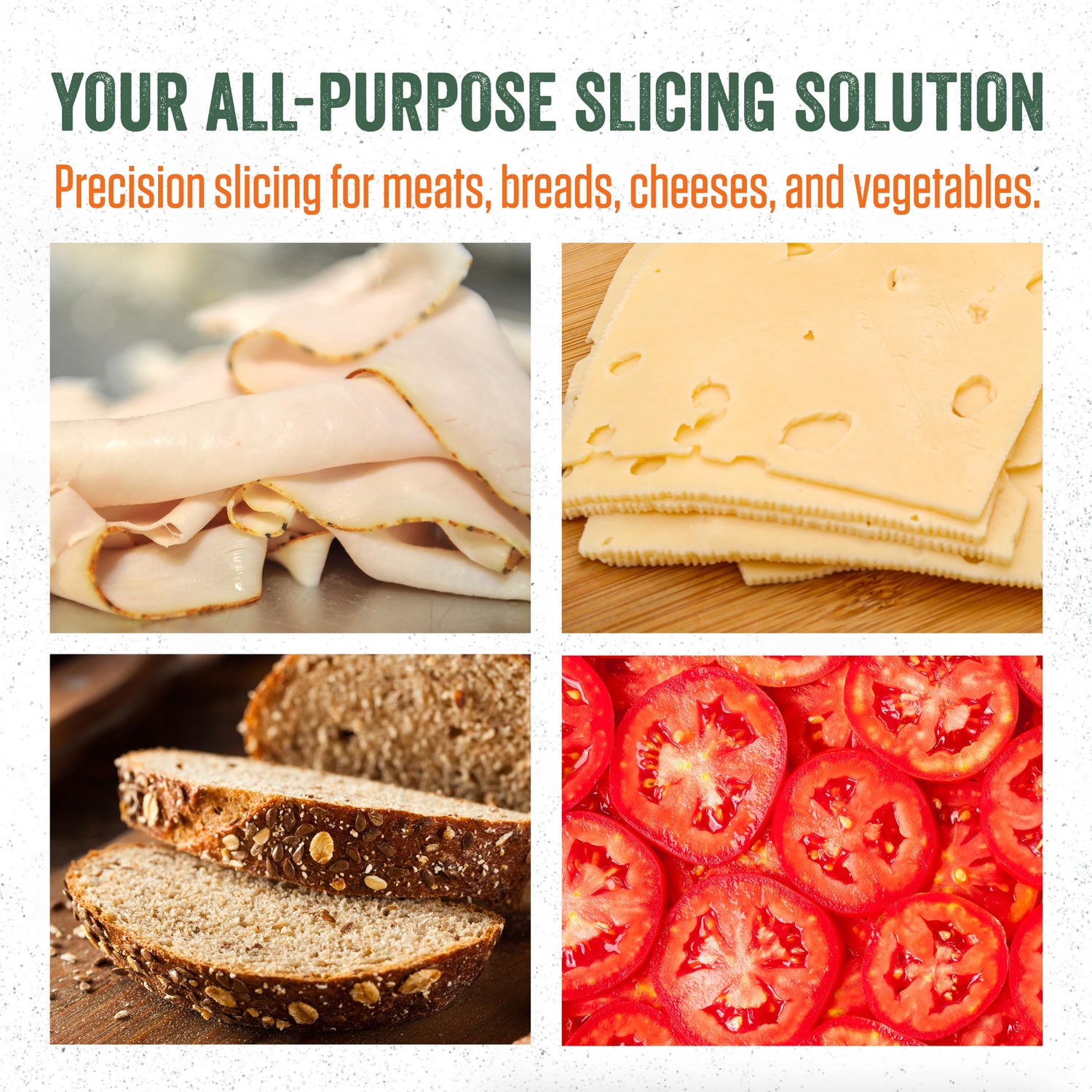 - Slice with Precision: With a belt-driven motor and stainless steel serrated blade, effortlessly create deli-thin lunch meats, uniformly thin jerky strips, and a variety of vegetable and cheese platters to impress family and friends.