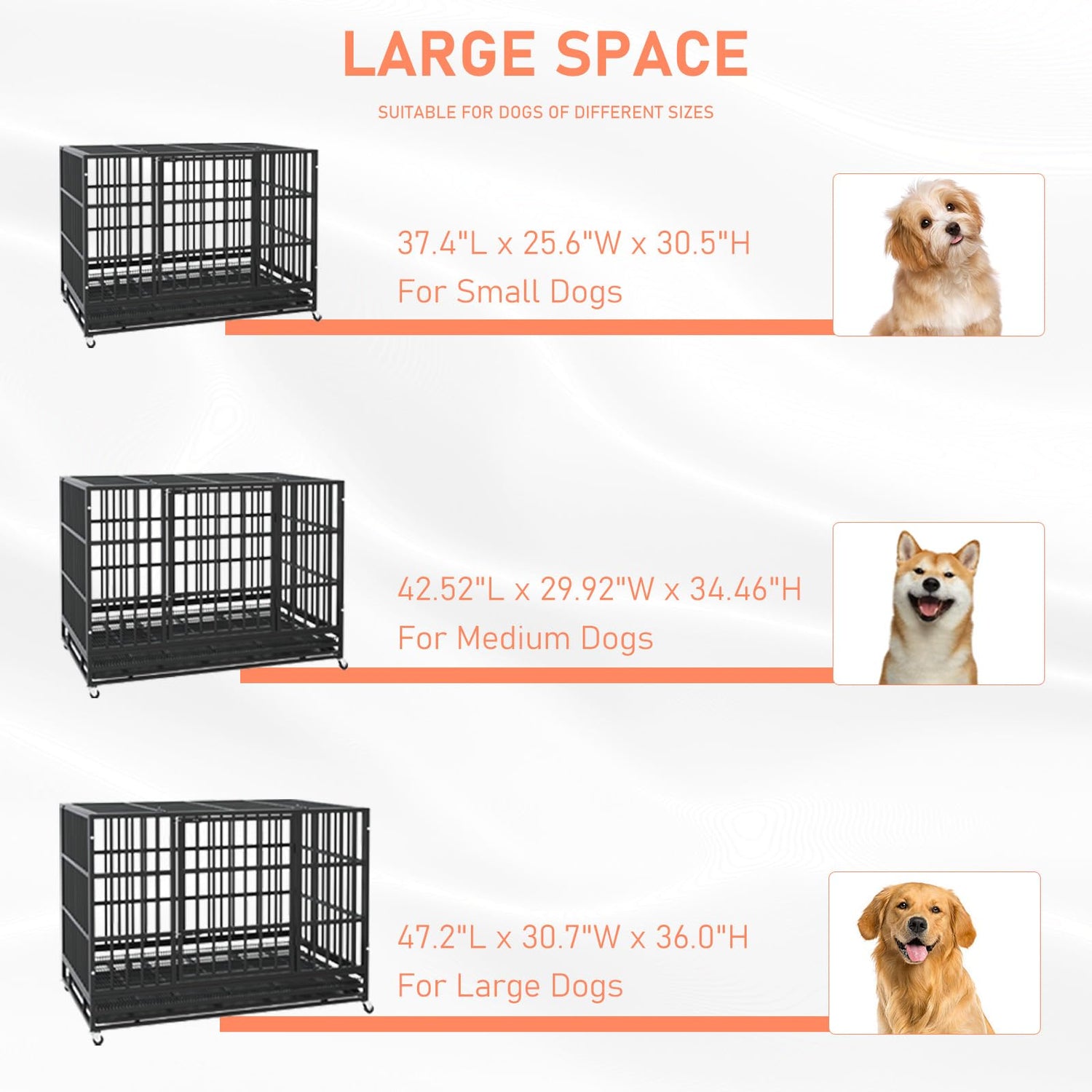 LEMBERI 48/38 inch Heavy Duty Indestructible Dog Crate, Escape Proof Dog Cage Kennel with Lockable Wheels,High Anxiety Double Door,Extra Large Crate Indoor for Large Dog with Removable Tray