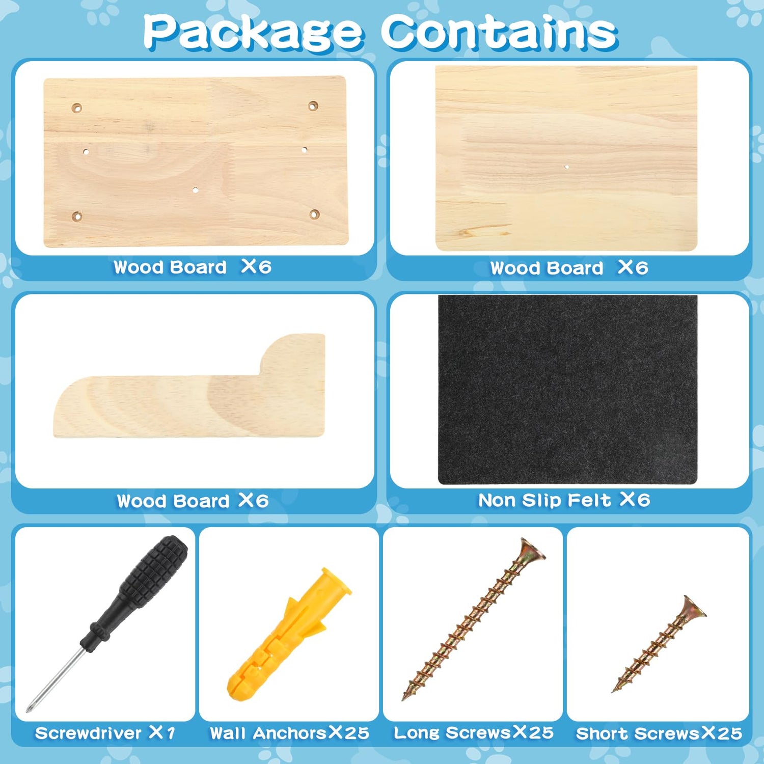 - Complete Accessories: Our wood cat stairs for wall come with assembly accessories including screws, so you can assemble the cat's playground by yourself; Our wooden boards have reserved holes, just use tools to nail the cat climbing frame to the wall; The ideal cat climbing frame is ready