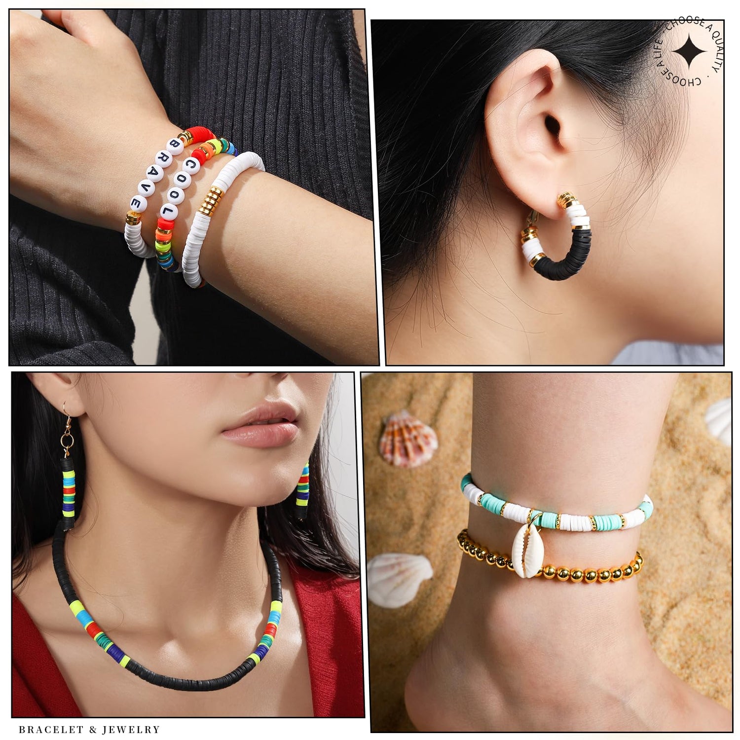 - Premium Clay Beads Kit : Made of quality polymer clay, these clay beads are soft, lightweight, friendly to skin, not easy to fade, perfect beads for bracelets. Each clay bead is 6mm wide, with 2mm hole, about 1mm thick, decent sizes for bracelets making. Classic white clay beads and black clay beads, nicely match most colors of beads or charms, support various stunning jewelry making.