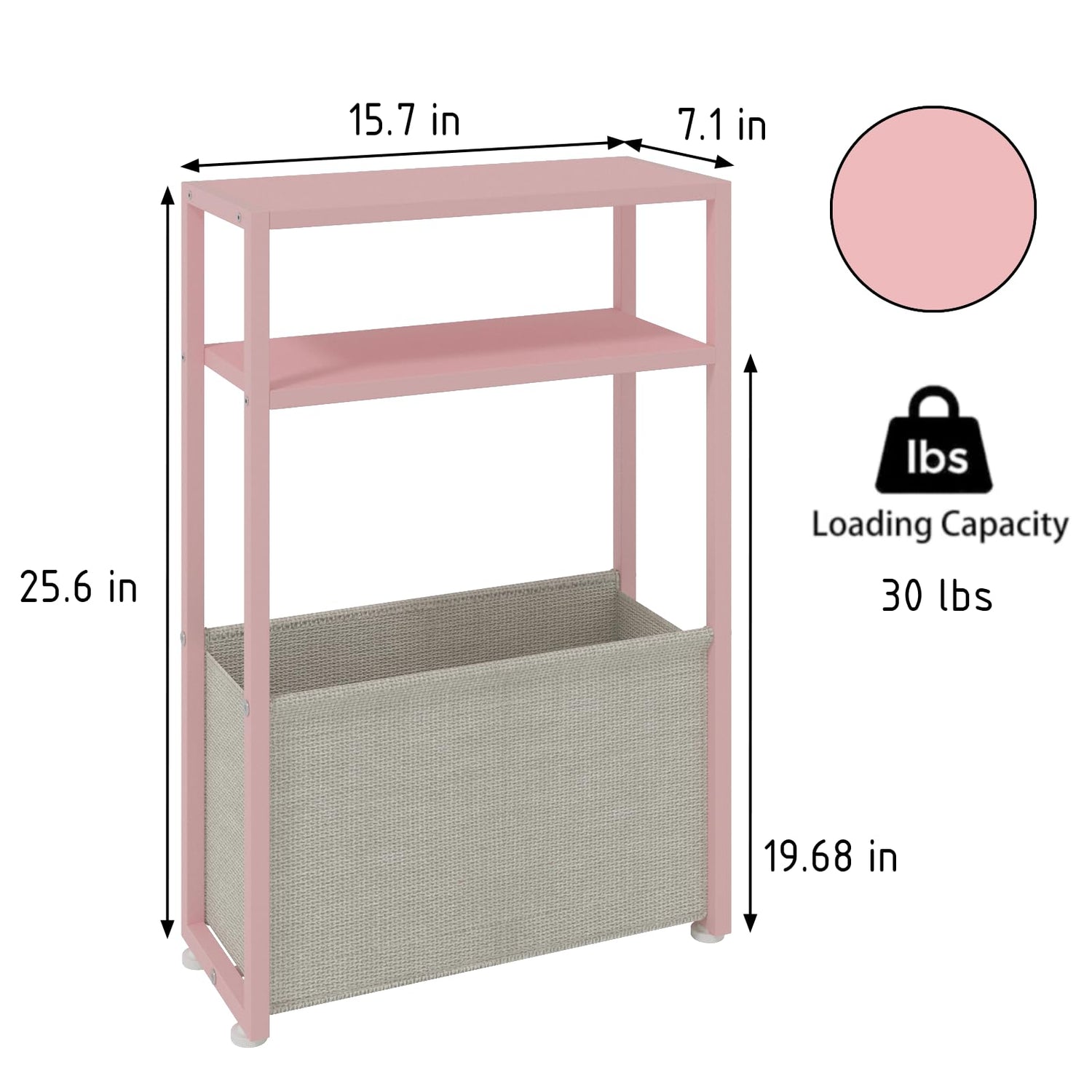 Leomonio Narrow Side Table, Slim End Tables with Fabric Basket, Skinny Table for Small Spaces, Thin Bedside Table for Living Room, Bedroom (1, Jelly Pink + Cream White)