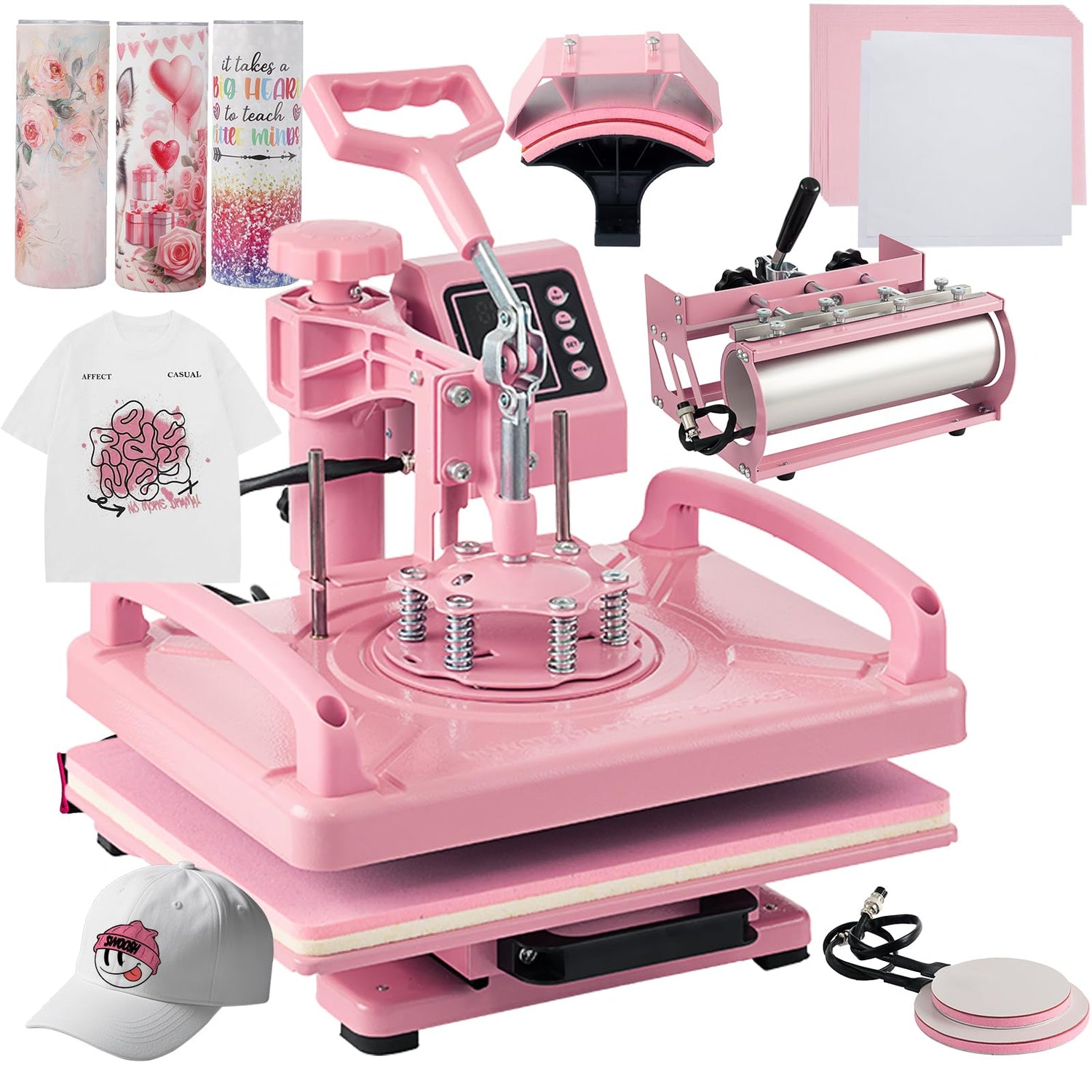 Leomru 5 in 1 Heat Press Machine 12x15 Inch, Heat Press Machine for T Shirts Hat Cap Mug Plate 360° Swing Away, Sublimation Heat Press Heat Transfer Machine W/ 30OZ Tumbler Press Pink