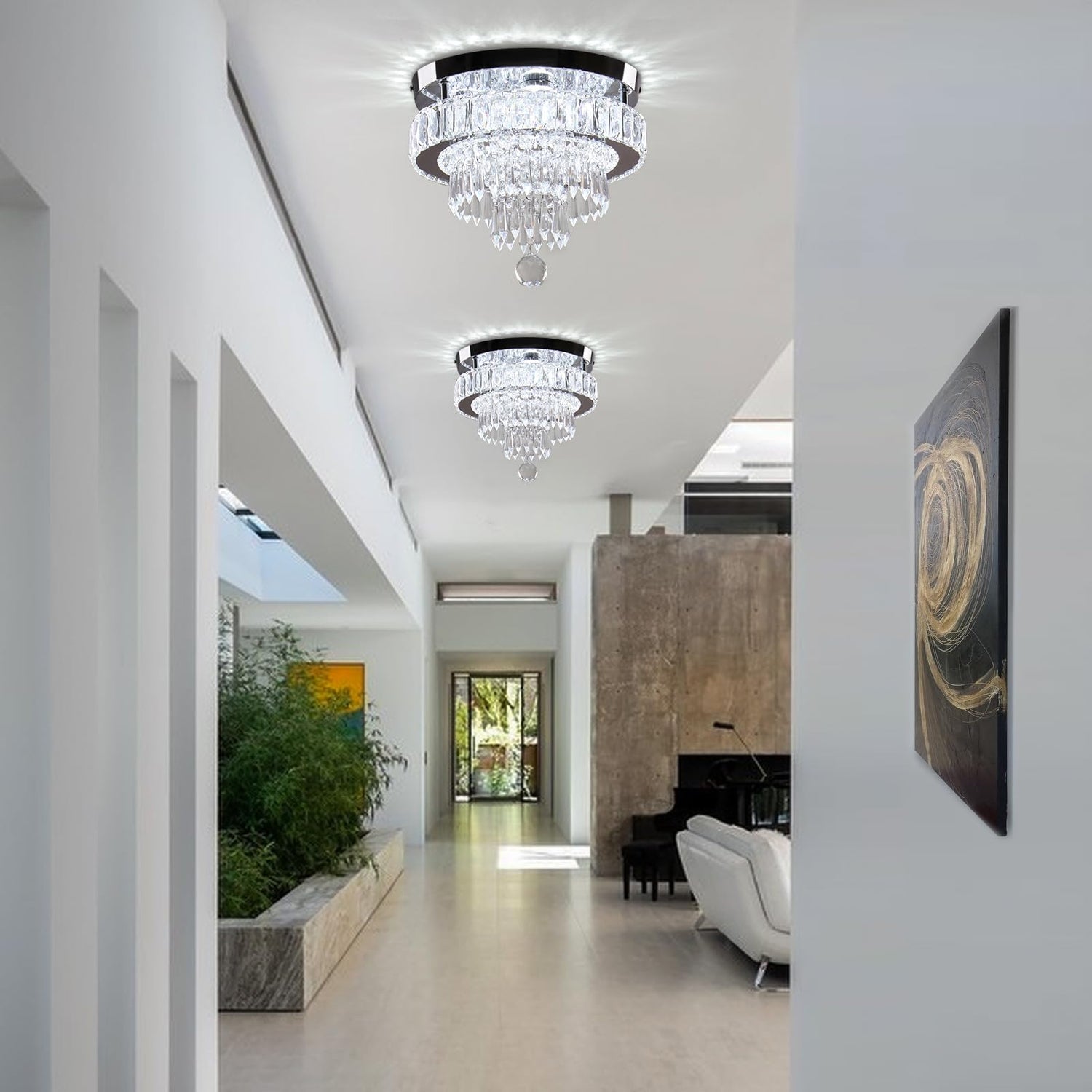 LEONTYNE 11.8 inch Crystal Chandeliers Modern Crystal Ceiling Light LED Chandeliers Semi Flush Mount Chandelier Light for Bedrooms Dining Living Room Hallway (6500K Cool White Light)