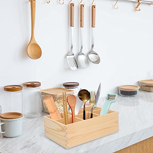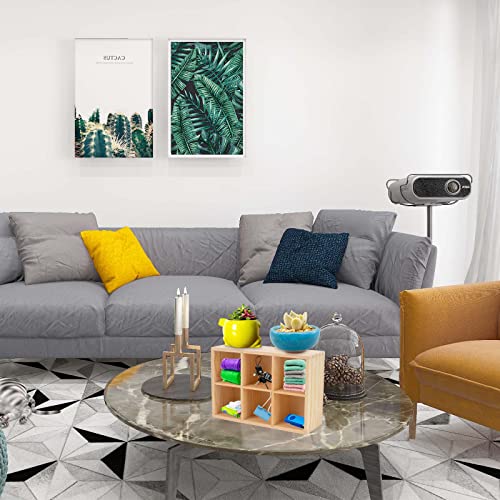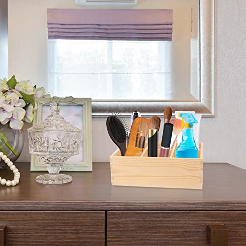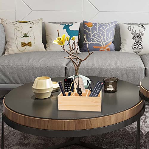 LepoHome Wood Pen Holder, Unfinished Wooden Remote Control Pencil Holder Caddy, Rustic Table Organizer with 6 Compartments for Art Supplies, Pen,