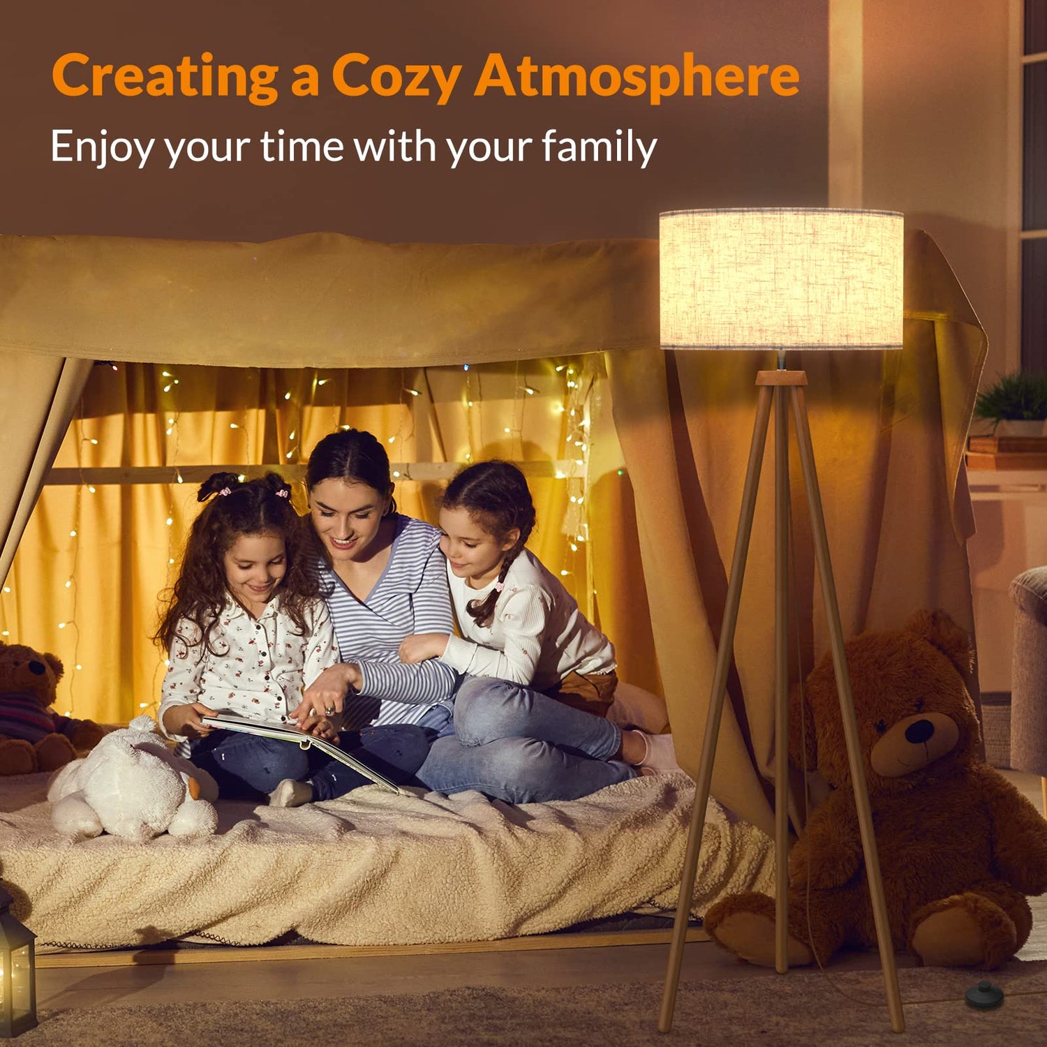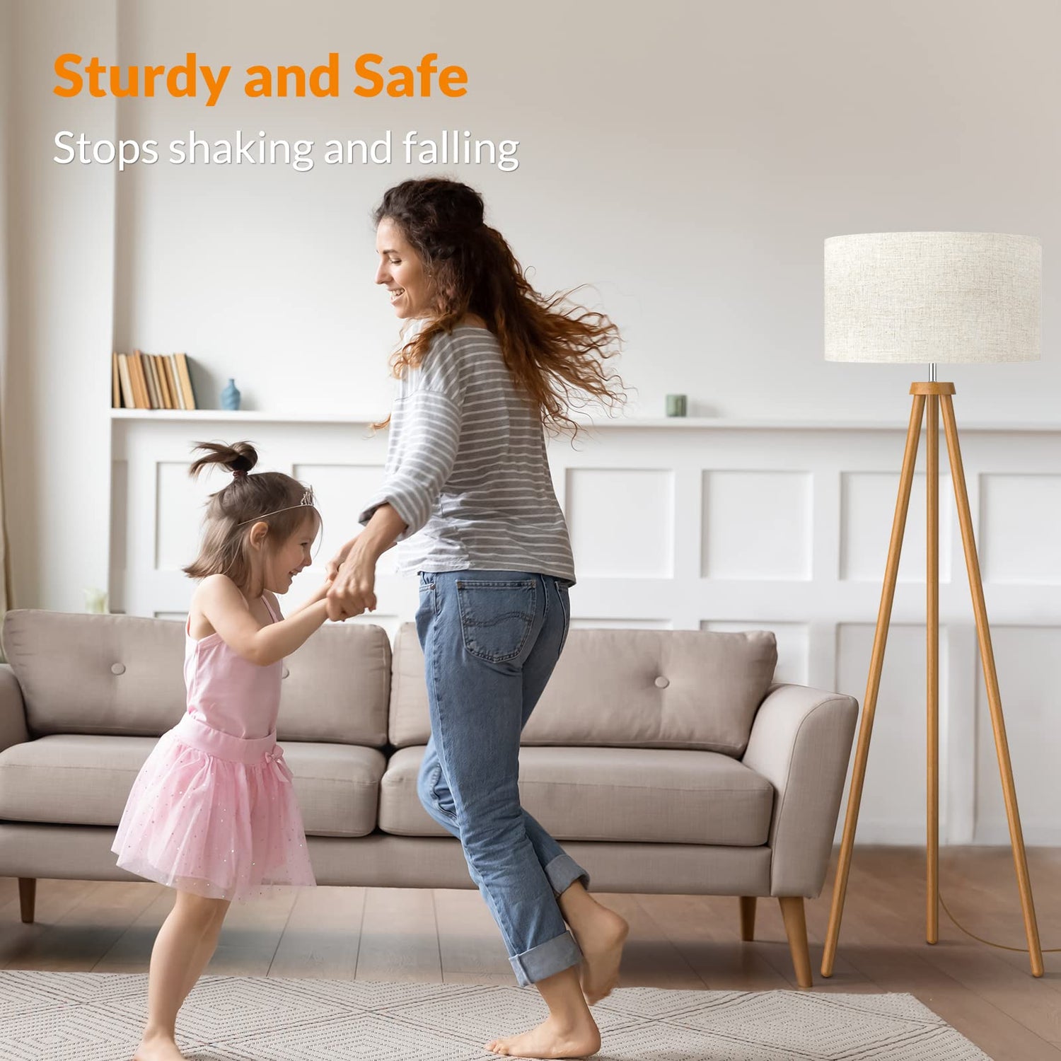 - High-Grade Material: The modern floor lamp consists of Nature Rubber wood tripod and firm cloth, which is enduring, firm, and aesthetic