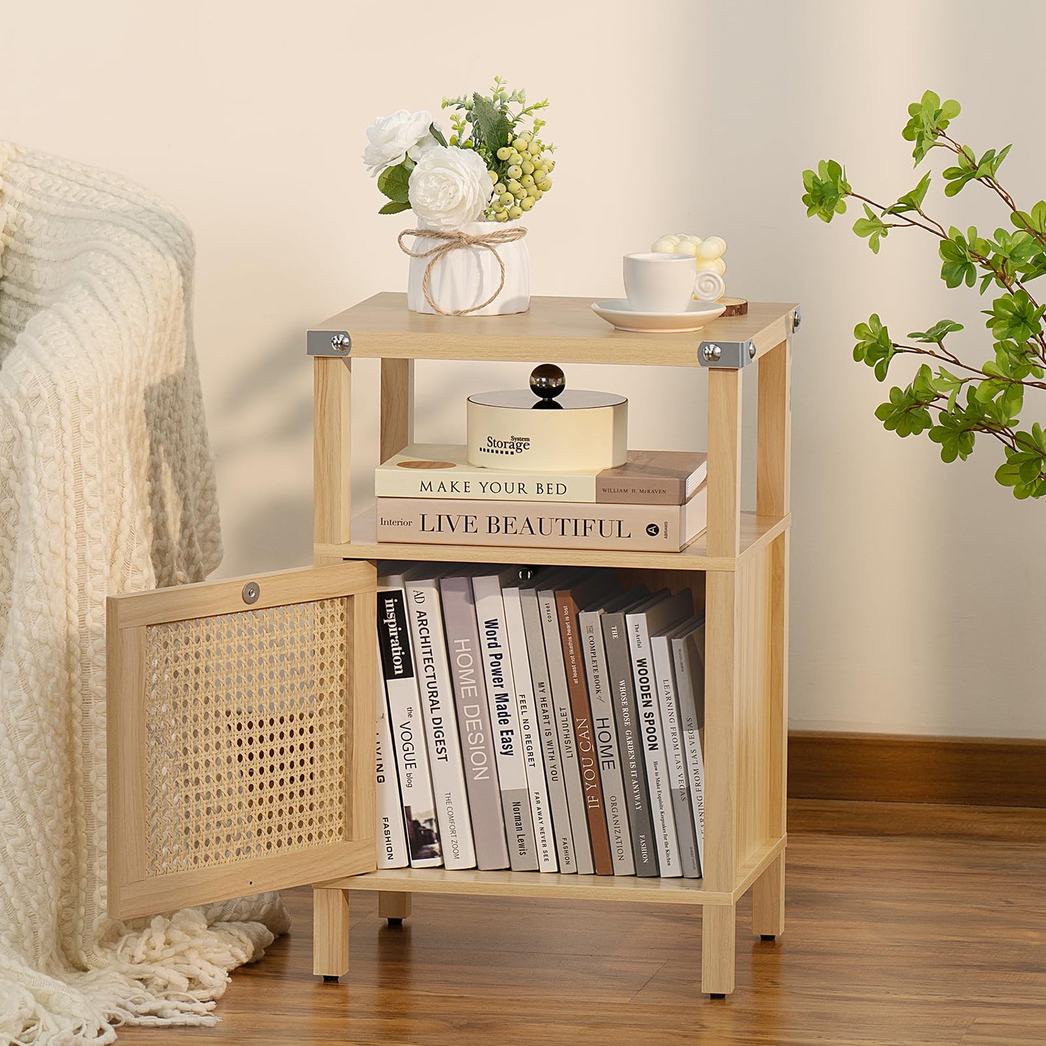 - 【Ample Storage Space & Durable】: There is ample storage space inside the rattan door, which can meet your various storage needs with the spacious table top and open storage shelf. It can also creat a stylish display for your lamps, clocks or picture frames. This sturdy side table is made of high quality boards, which can provide great durability and stability.