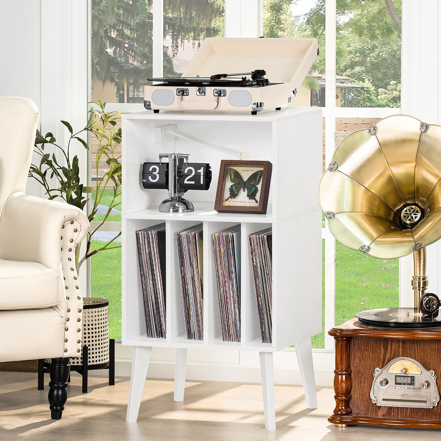 - 【Huge Vinyl Player Stand】This sturdy record stand adopts a full wooden structure and is designed in all white, giving it a superior appearance and texture. The size of the brown record player table is 18.1'' L x 15.7'' W x 34.2'' H, which can fully accommodate 100 lbs & 160 records.We strive to provide customers with a comfortable user experience while creating large-capacity turntable stand.