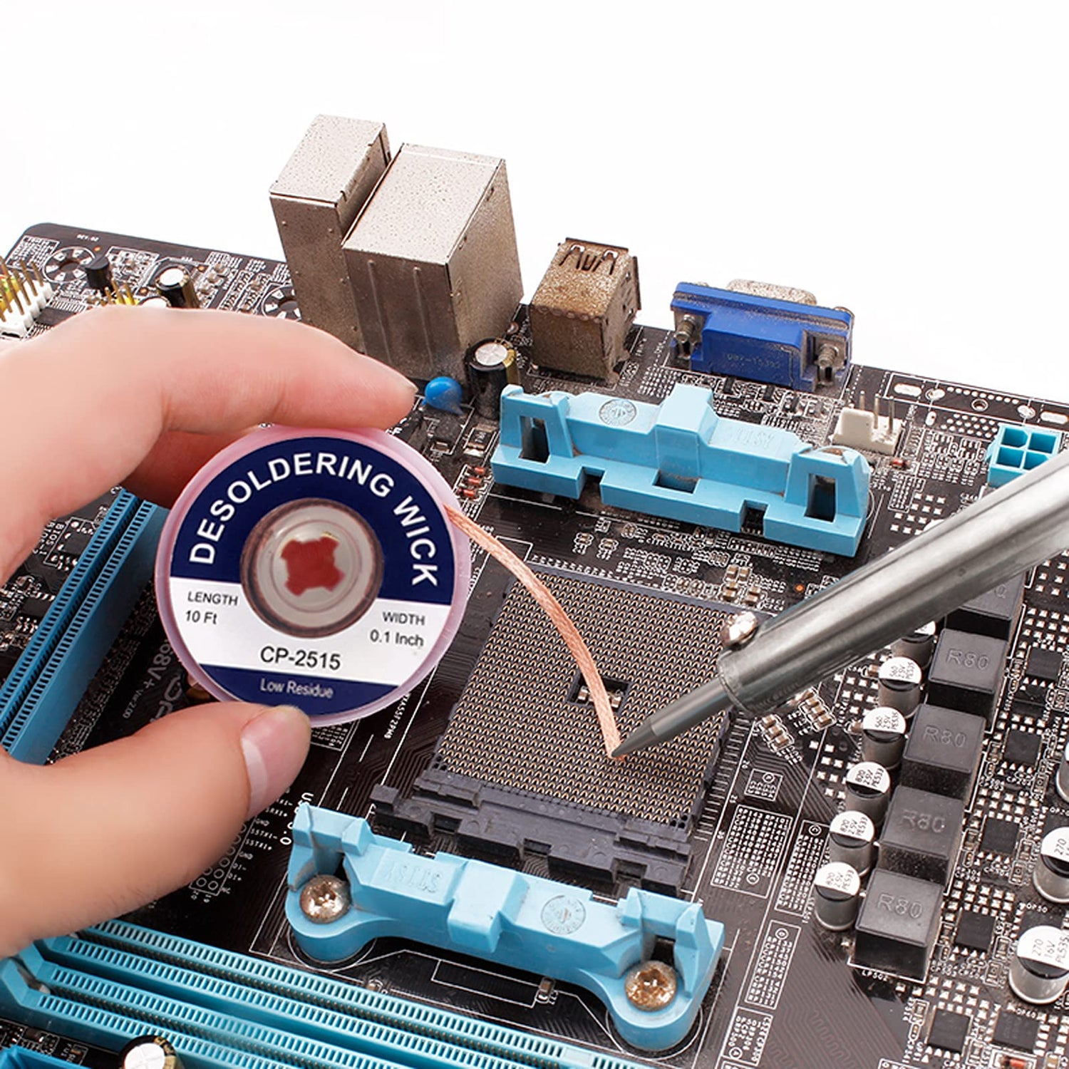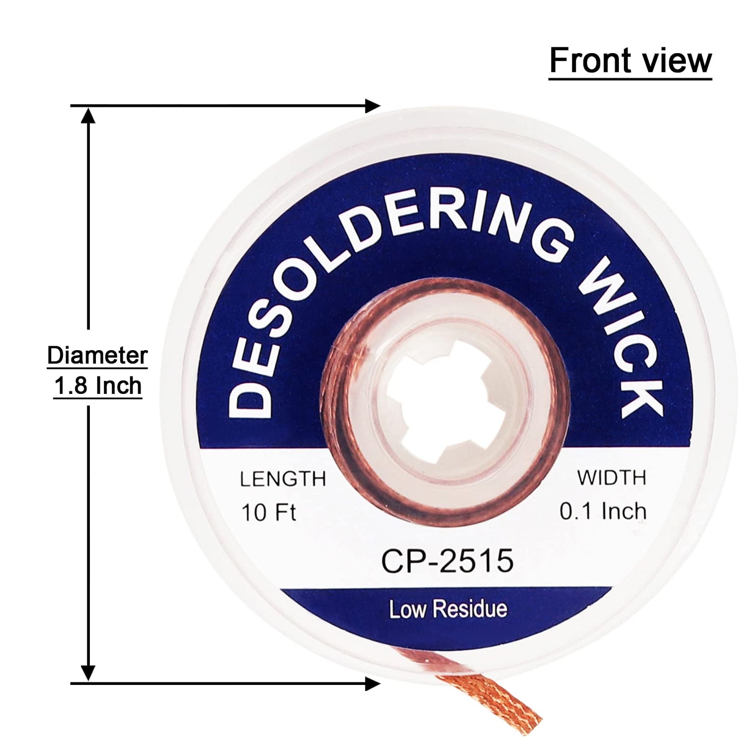 - 2.1 pieces of no-clean solder wicks, each wick is about 10ft long and 0.1 inch in width, enough quantity and length for your daily needs