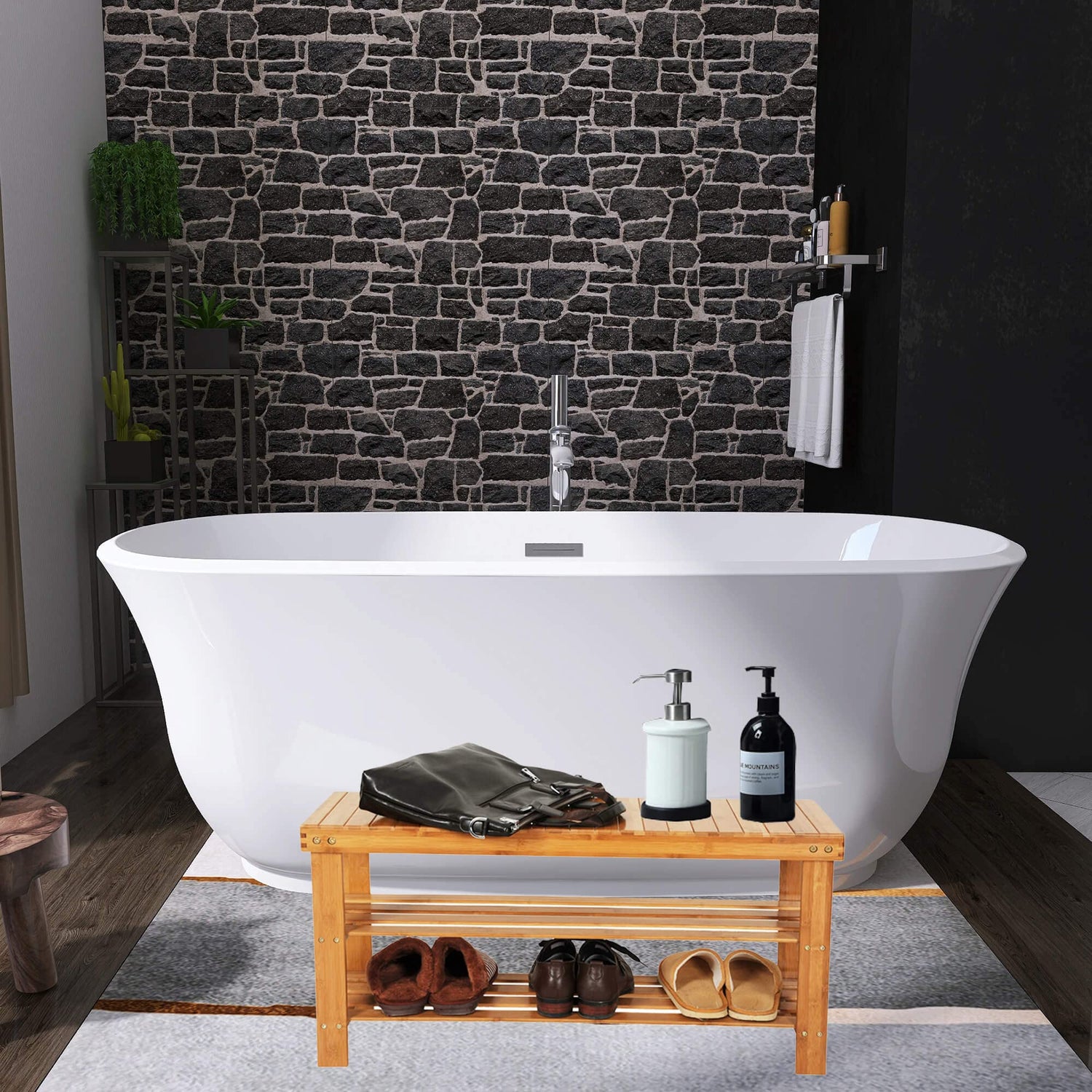 - Multi-purpose Spa shower bench, can be used in shoe rack to storage your shoes in tidy and neat. shelf space between 2 tiers is 6 inch.