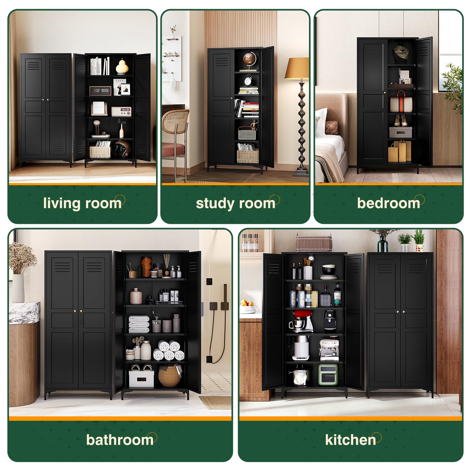 Letaya Black Storage Cabinet with Feets-Metal Home Kitchen Pantry Cabinets with Doors and Adjustable Shelves,Organization Locker for Cupboard/Bedroom/Dining/Living/Bathroom/Office/Garage Room (Black)
