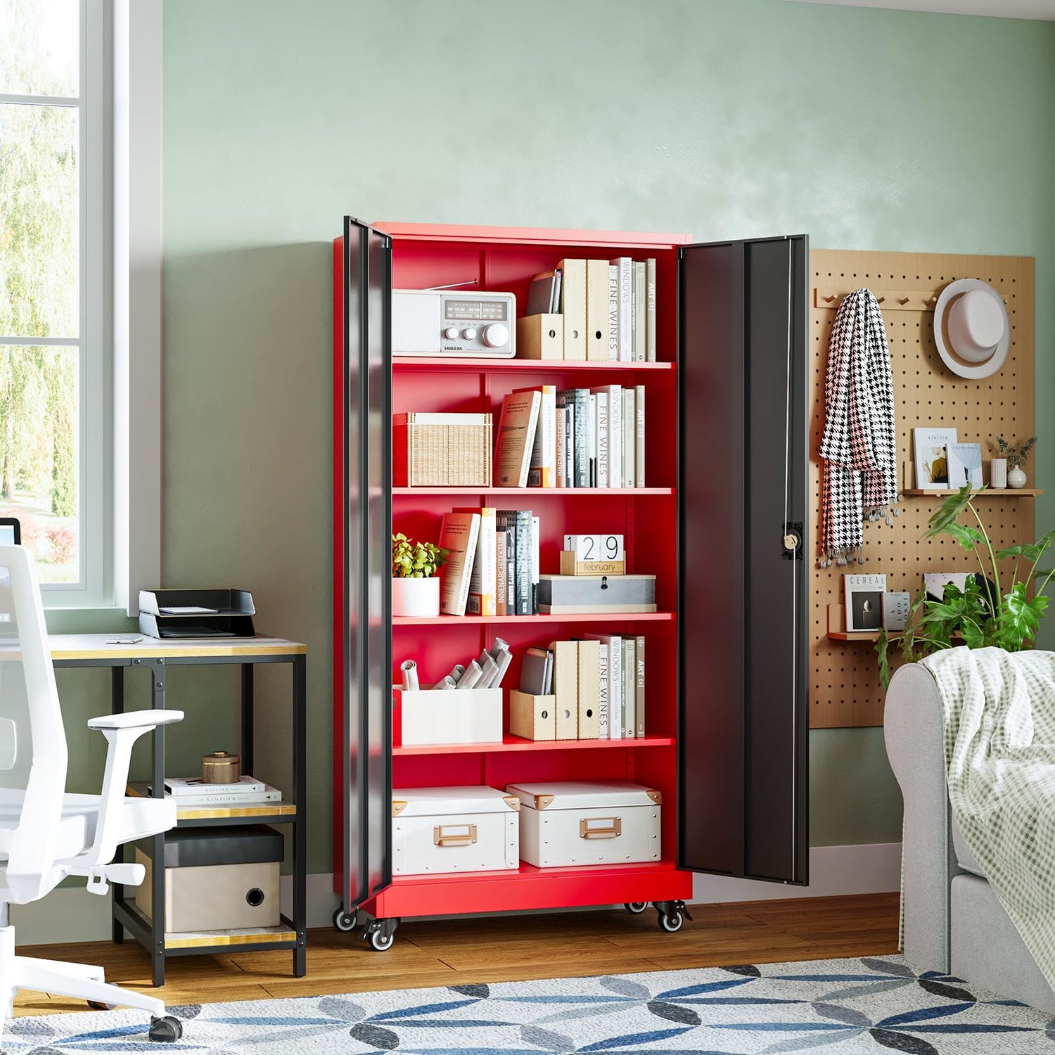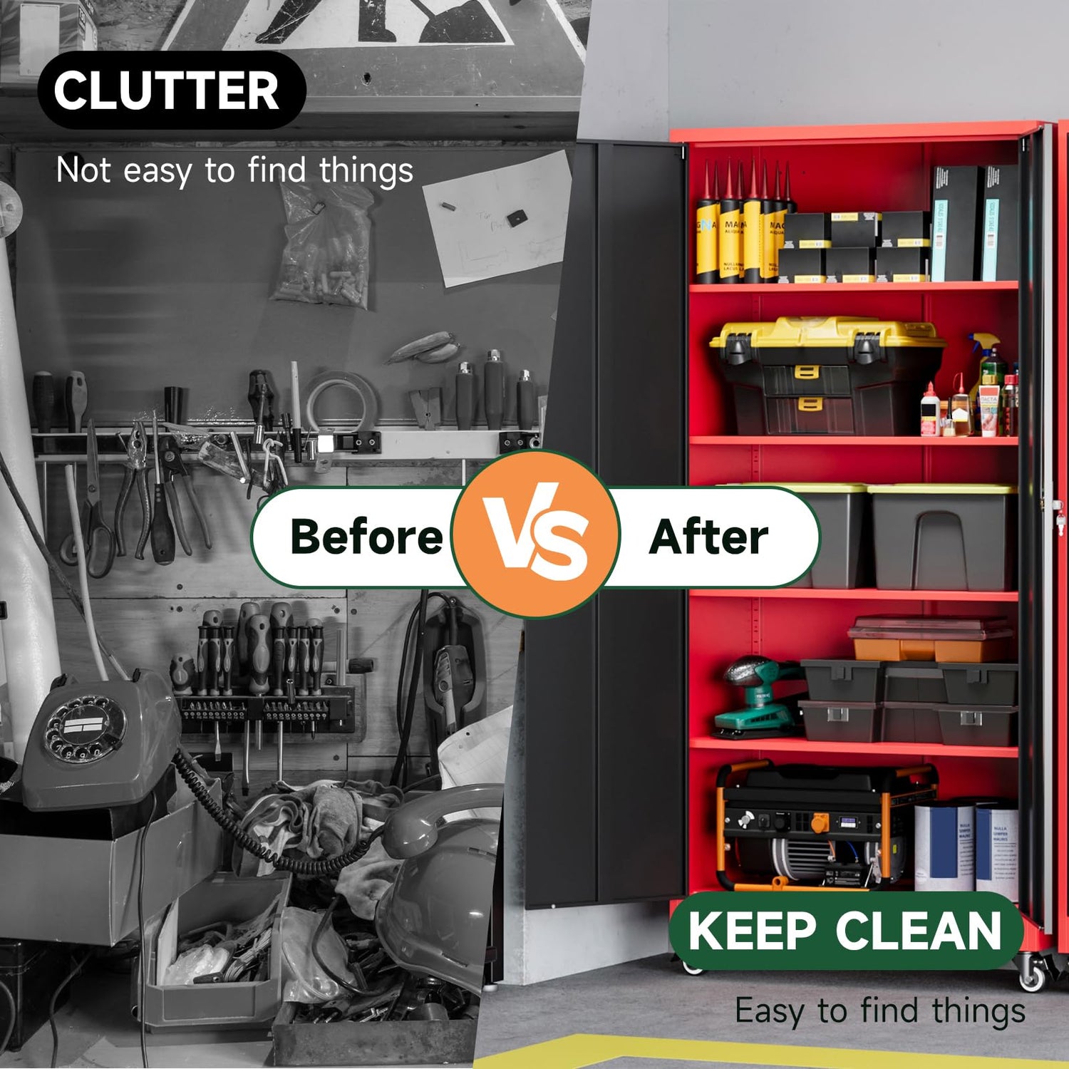 Letaya Metal Garage Storage Cabinets with Lock Door and Adjustable Shelves, Steel Tool Cabinets for Home,Office,Warehouse Organisieren (Black Red, 75" H)