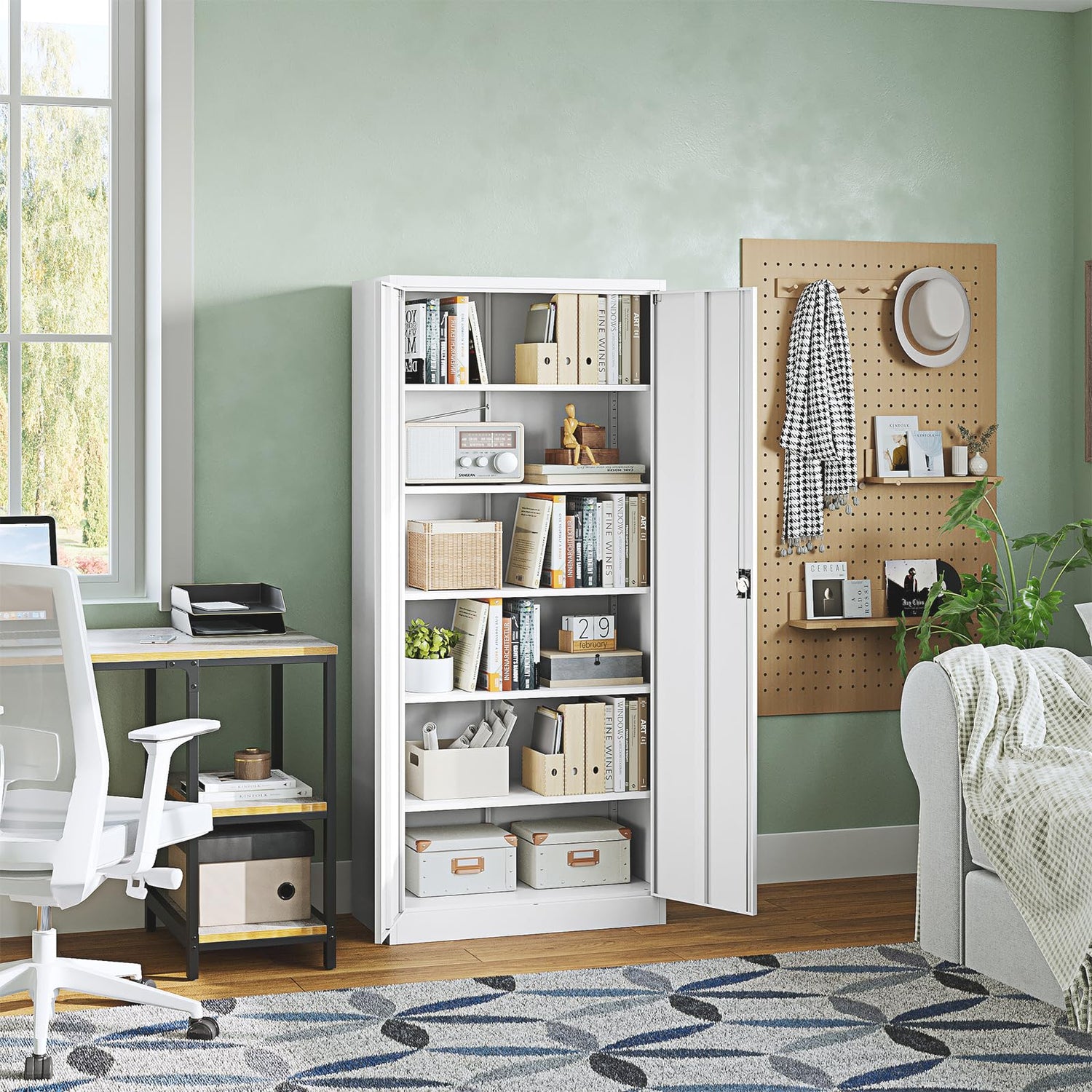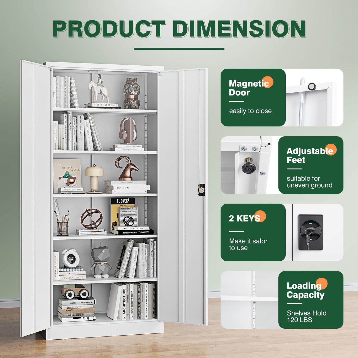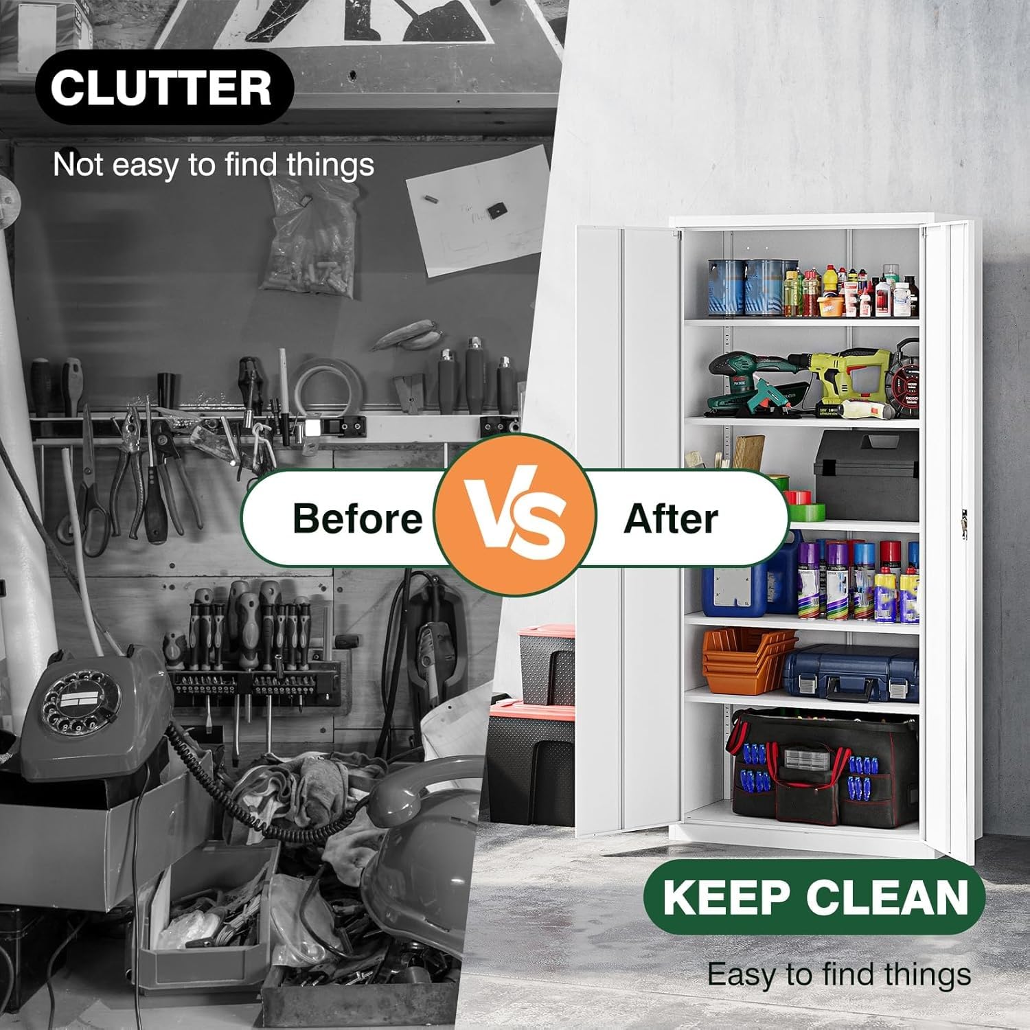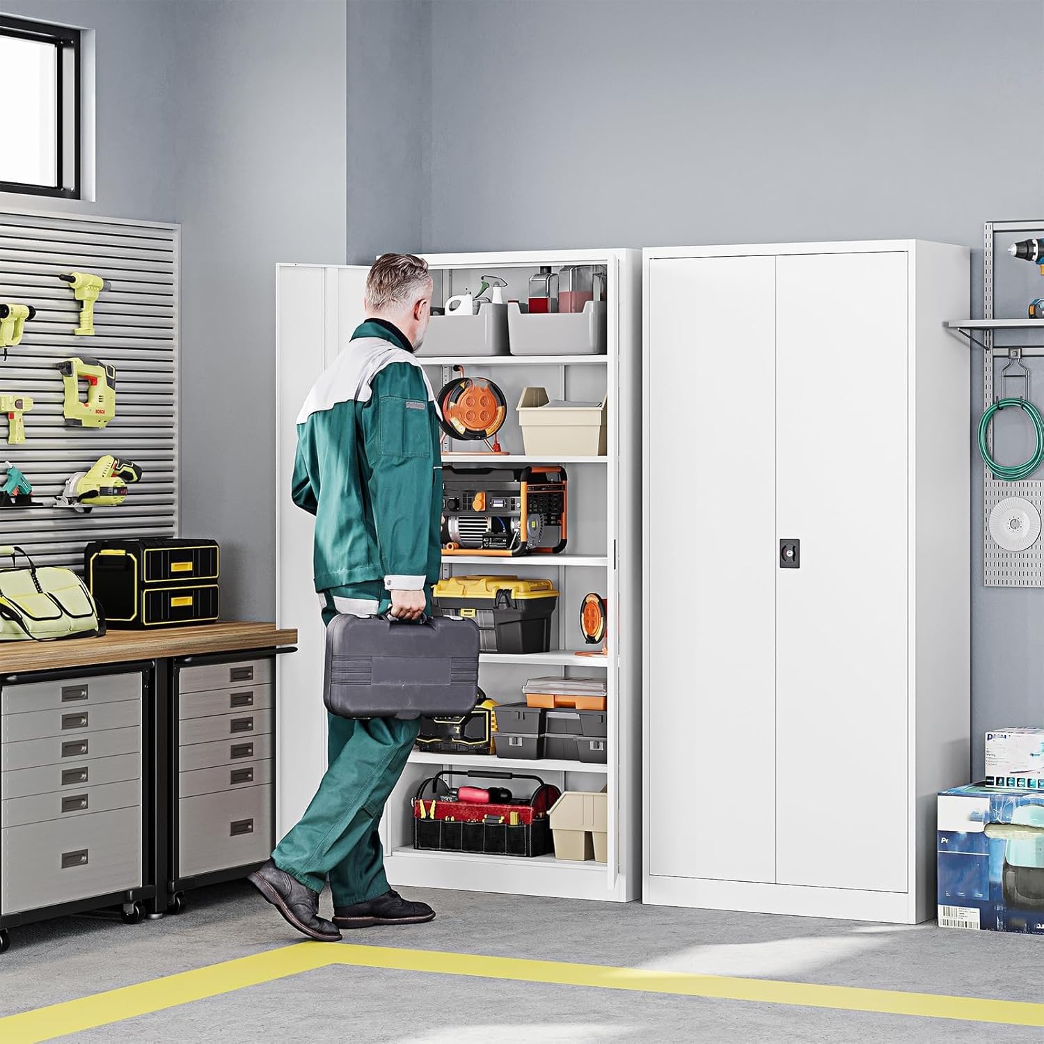 Letaya Metal Garage Storage Cabinets with Lock Door and Adjustable Shelves, Steel Tool Cabinets for Home,Office,Warehouse Organisieren (White, 71" H)