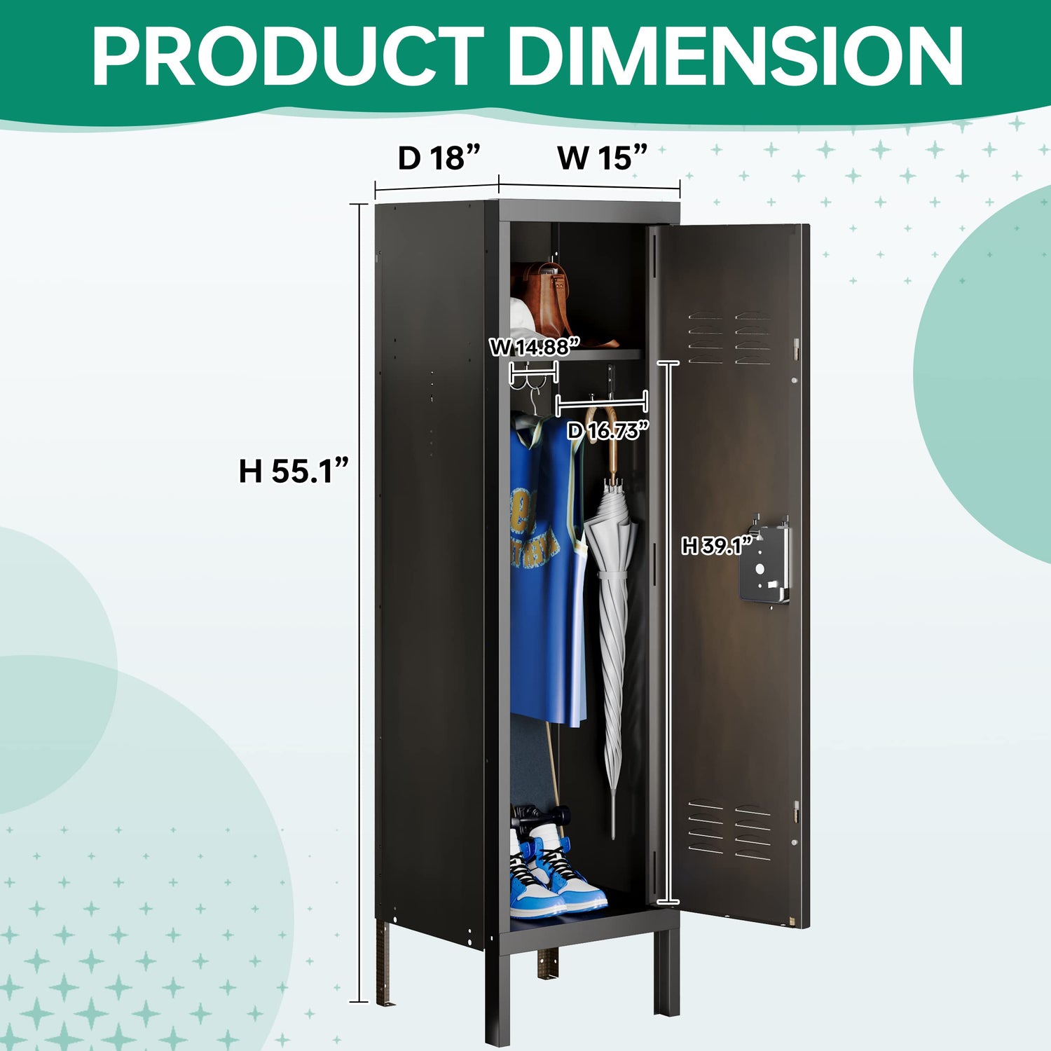 - 〖Save Space〗Letaya metal locker Dimensions 55" high 18" deep design can hold more items,perfect for hanging clothes, hats, sporting goods, etc,15" wide save room space.