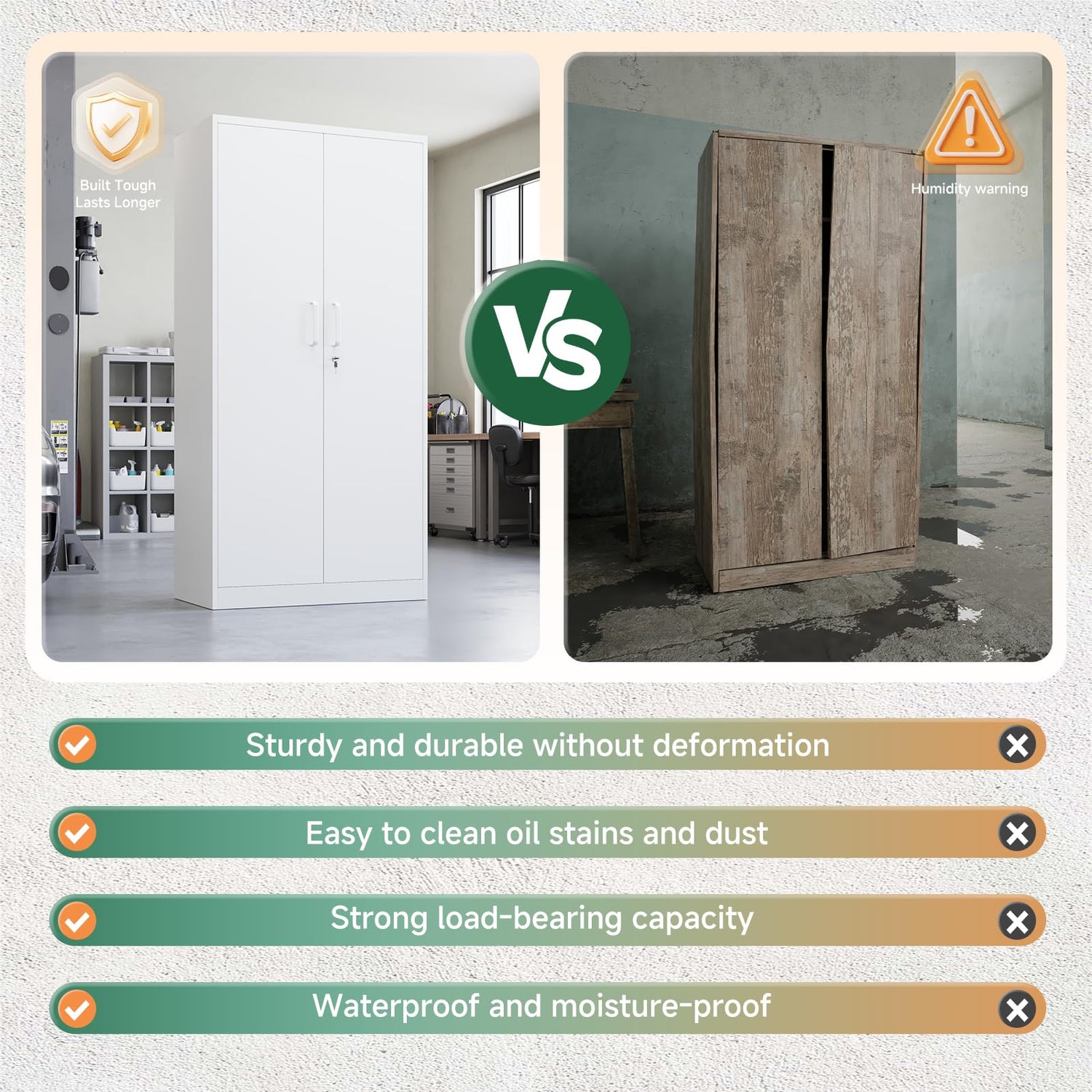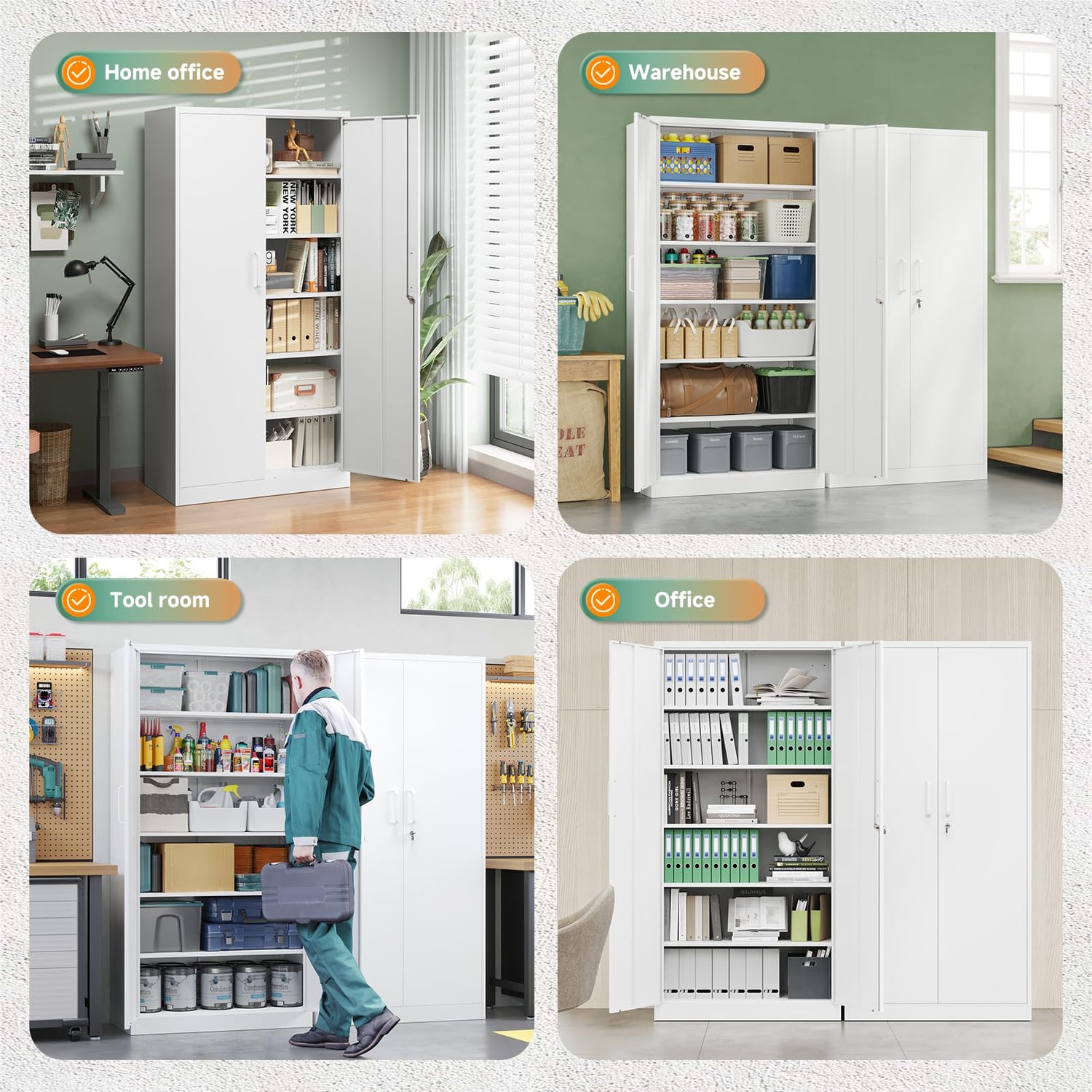 Letaya Metal Storage Cabinet with Lock Door Adjustable Shelf,72" Steel Lockers for Office, Home,School,Kitchen,Garage Tool Utility Cabinet (2 Door-White)