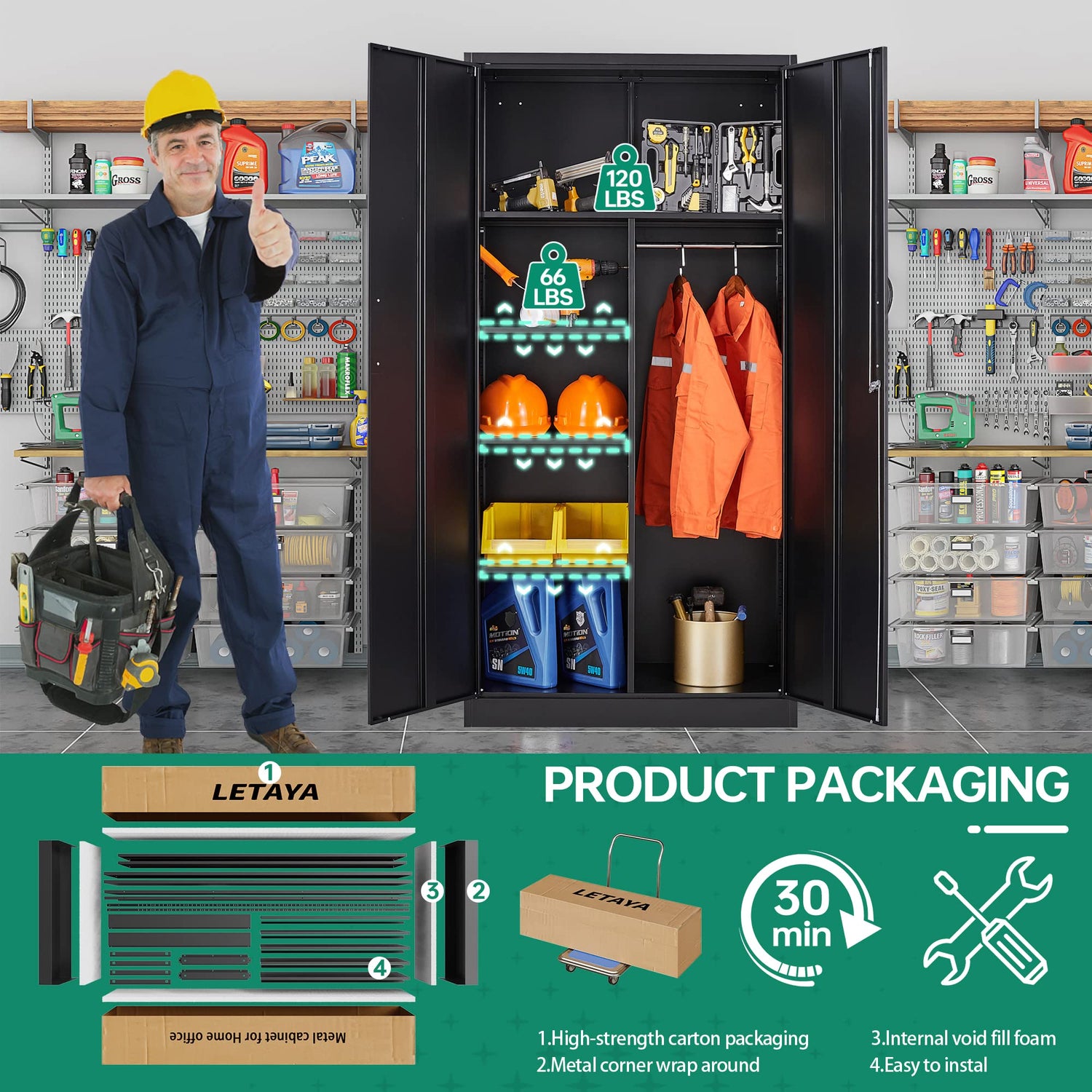 - 【Upgraded Materials】Letaya metal storage cabinet is made of 0.8mm reinforced full-steel frame construction, plate adopted environmentally powder coated finish, capacity to resist corrosion and rust,more durable than wood cabinets.