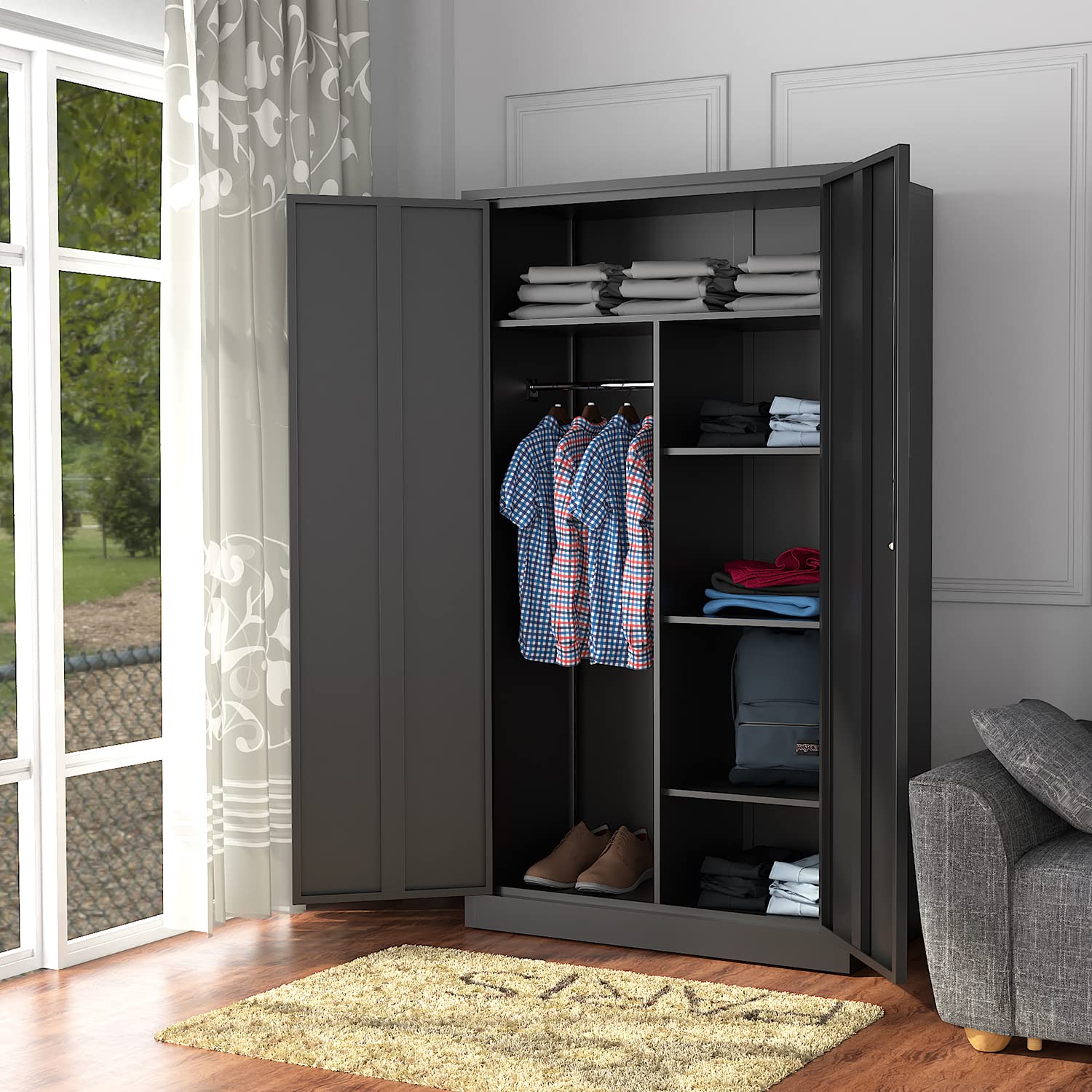 Letaya Metal Storage Cabinets Locker with Lock Door, 72'' Clothing Coat Steel Storage Freestanding Wardrobe for Office, Home, School, Employee,Gym,Fire Department (Black)