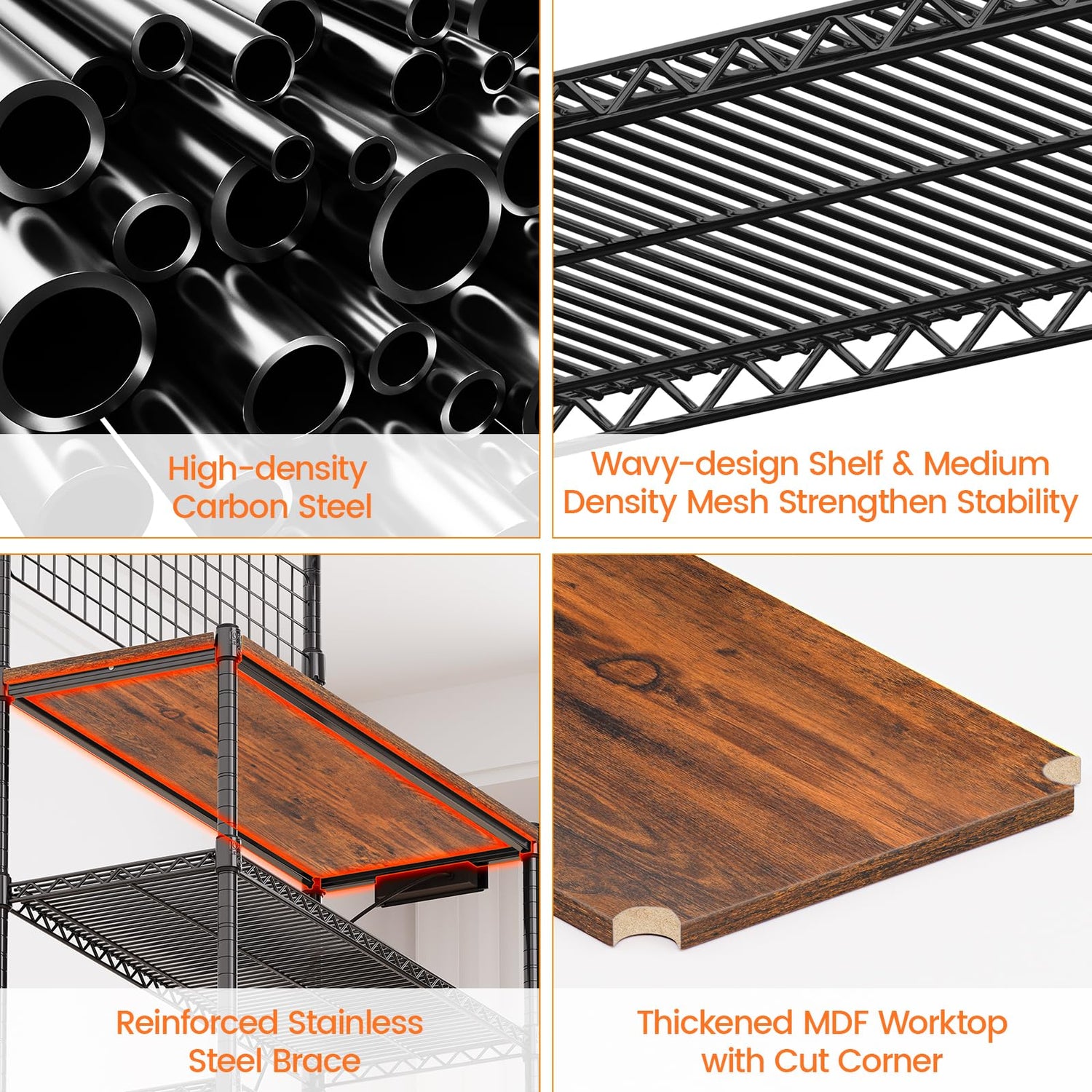 - Sturdy & Stable Construction - Made of high-density carbon steel, removable wood countertop, this microwave stand is sturdy and rustproof. Your kitchen appliances will find a reliable home on this sturdy kitchen cart. Also, the height of this kitchen rack cart can be adjusted with secure clips in 1"increments.