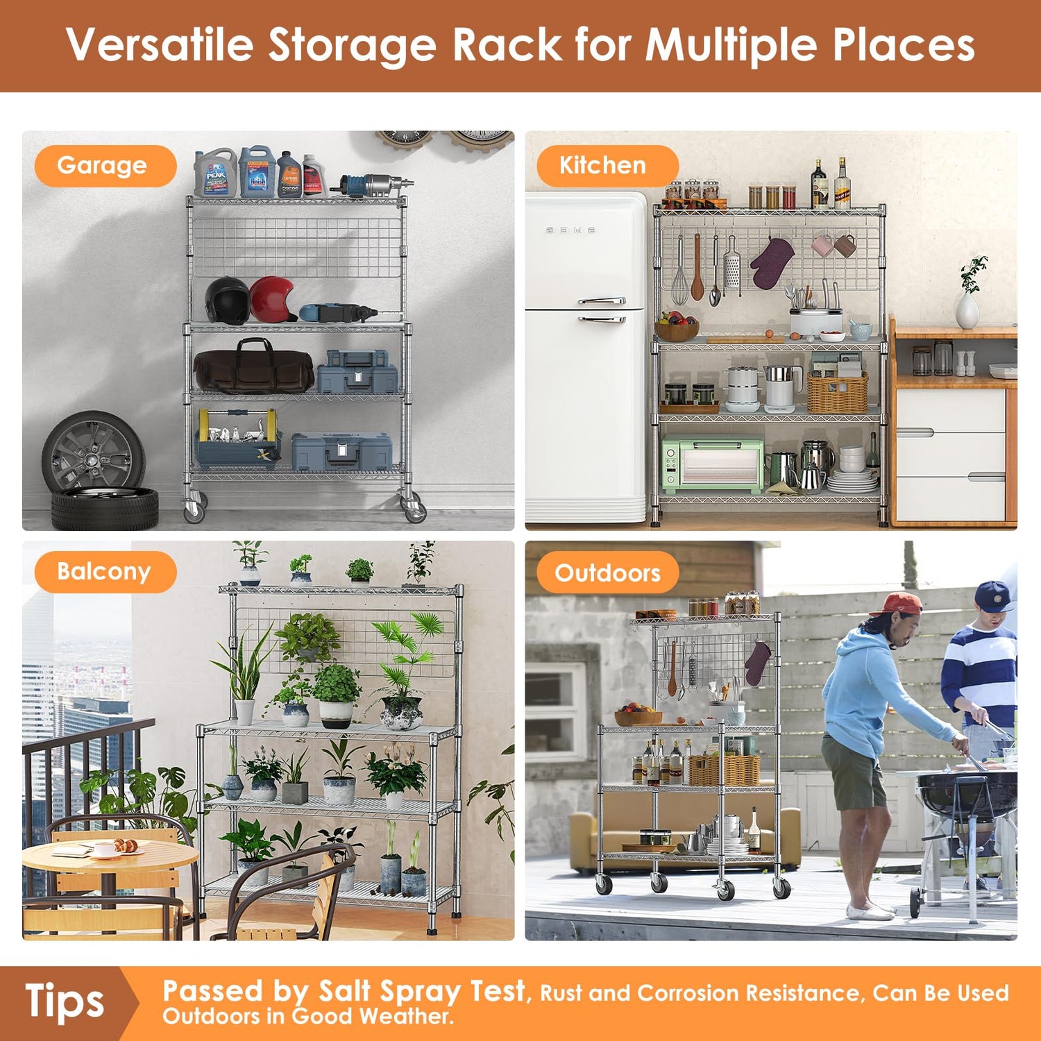 - 【Easy to Assemble Large Storage Racks】Assembly dimensions: 42"L × 18"W × 63" (no wheels). The 4-tier rolling kitchen bakers rack with all parts in the package, can be easily assembled without tools. Perfect for storage in restaurants and kitchens, coffee bars, snack bars, flower shops, garages, warehouses and studios, etc. With the wheel design, it can also be used as a mobile food storage rack for outdoor barbecues.