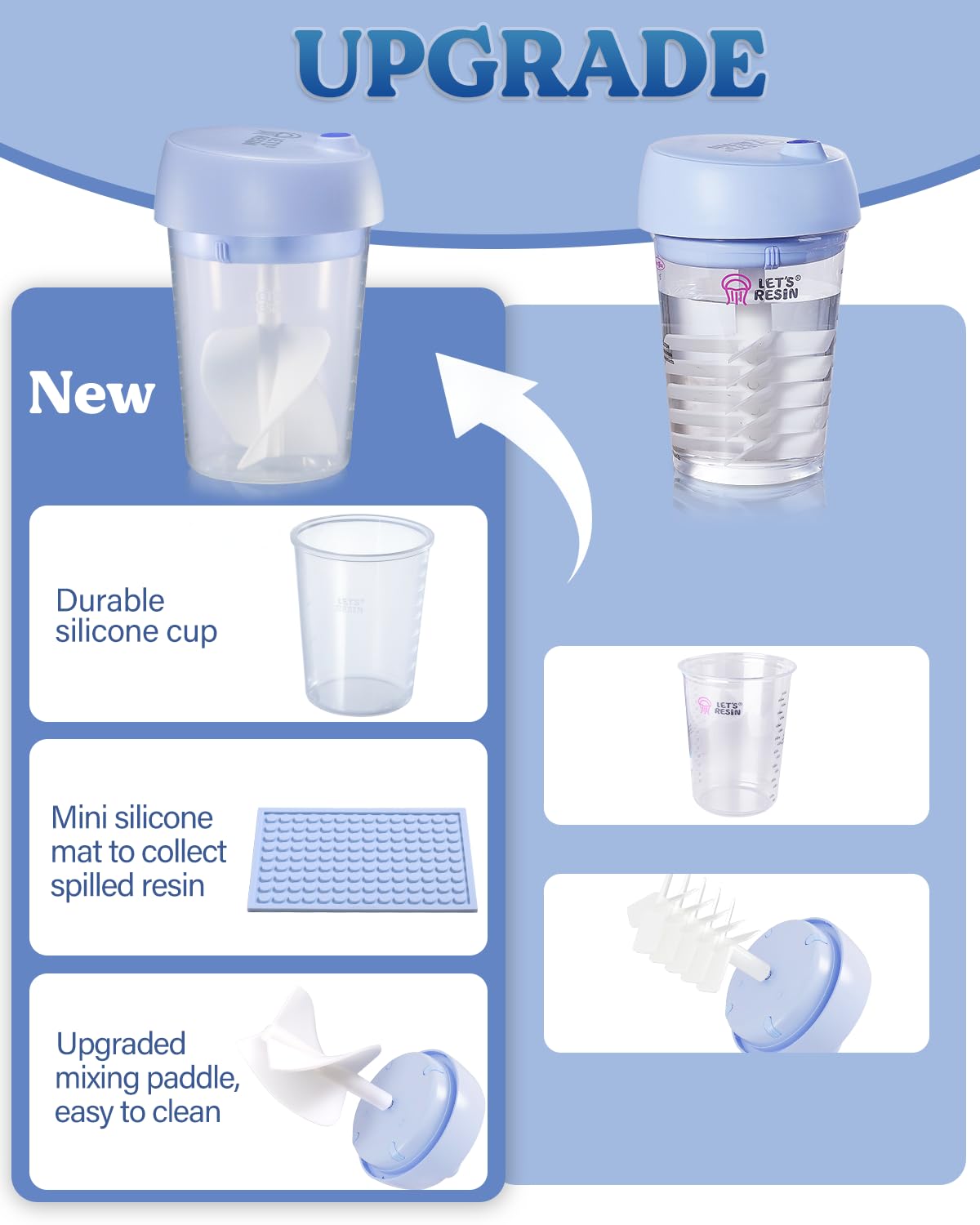 LET'S RESIN Upgraded Auto Resin Mixer, Hands-Free Easy Clean Epoxy Mixer with Silicone Mixing Cup, Rechargeable Electric Epoxy Resin Mixer for 24Fl.oz (Patented)