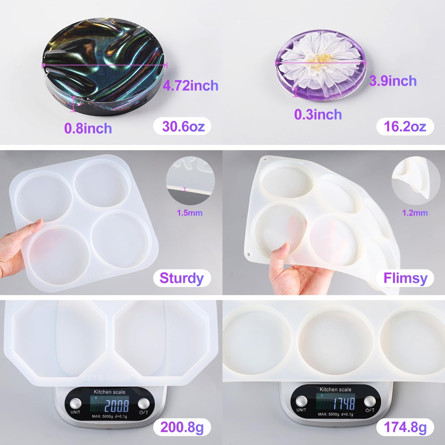 - 100% Satisfaction Guarantee: These silicone molds for resin with a glossy interior surface, you can use mold release spray or mild soapy water to de-mold easily. If you encounter any problems when using LET's resin products, please feel free to contact us at any time. LET'S RESIN strives to offer you 100% satisfaction.
