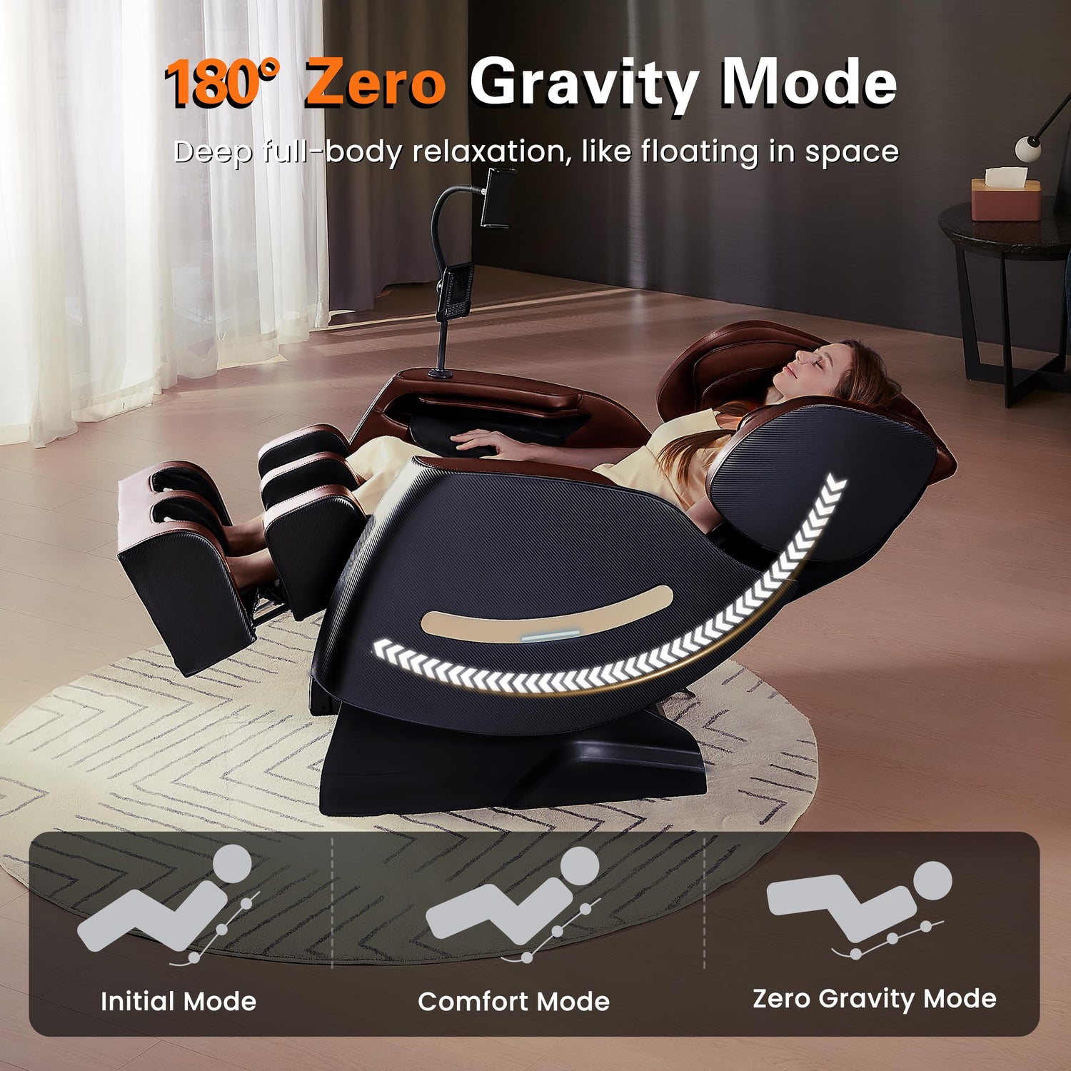 - ๐๐๐ซ๐จ-๐๐ซ๐๐ฏ๐ข๐ญ๐ฒ ๐๐๐๐ฅ๐ข๐ง๐๐ซ ๐๐จ๐ซ ๐๐ฅ๐ญ๐ข๐ฆ๐๐ญ๐ ๐๐๐๐จ๐ฆ๐ฉ๐ซ๐๐ฌ๐ฌ๐ข๐จ๐ง: Experience the ultimate relief with one-touch 180ยฐ full-flat recline, this full body massage chairs perfect for sleeping. The Zero Gravity position elevates your legs above your heart, reducing spinal pressure and enhancing relaxation. Stay reclined after your massage chair for lasting comfort.