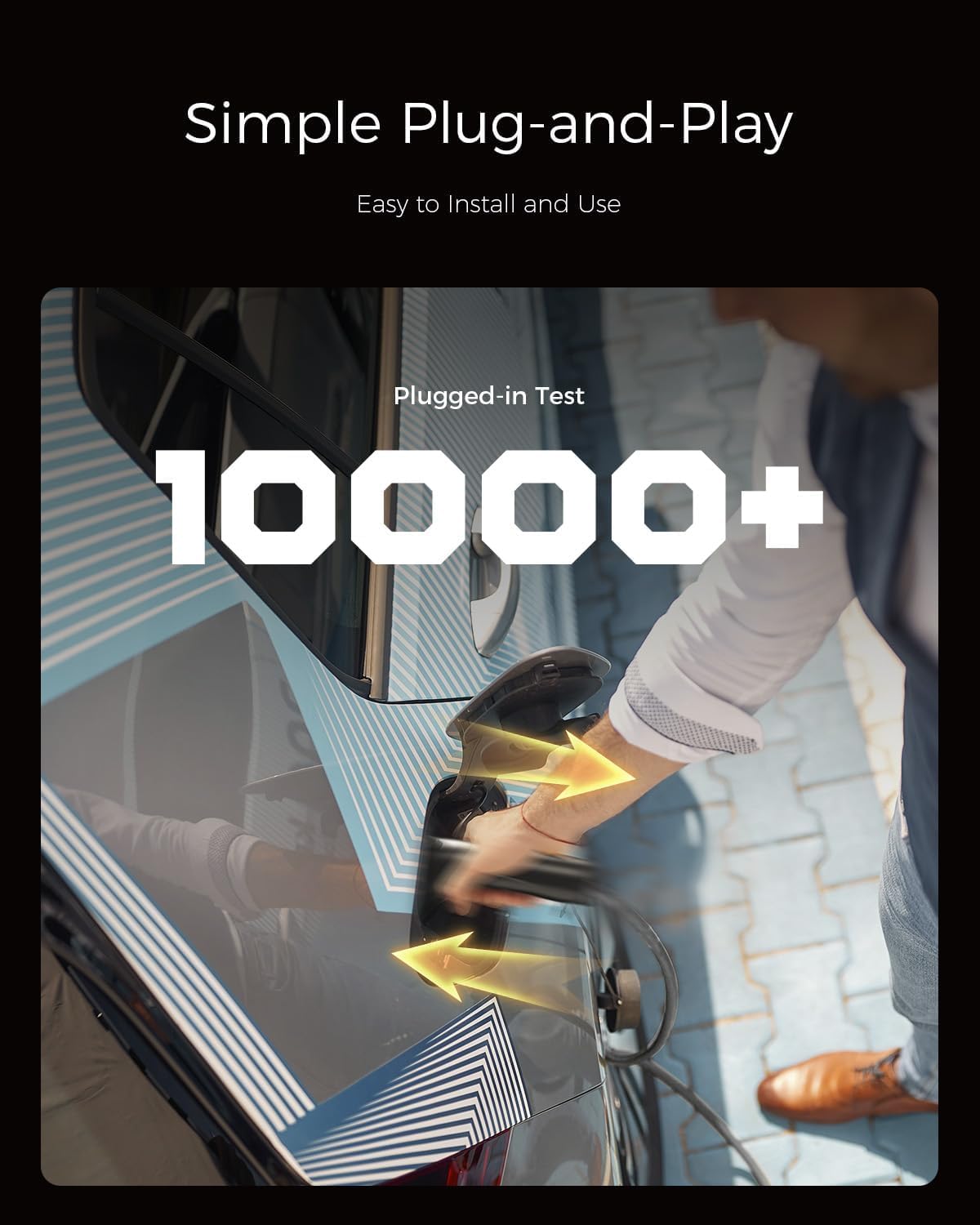 - 【Simple Plug-and-plug】The EV charger is extremely user-friendly, requiring only a simple plug-in to start charging once powered on. Our charging connector has passed rigorous testing with over 10,000 plugged-in, ensuring its durability. Perfect for short commutes, simply plug it in when you get home from work to charge your EV – no additional steps required. It's the ultimate convenience for your daily charging needs.