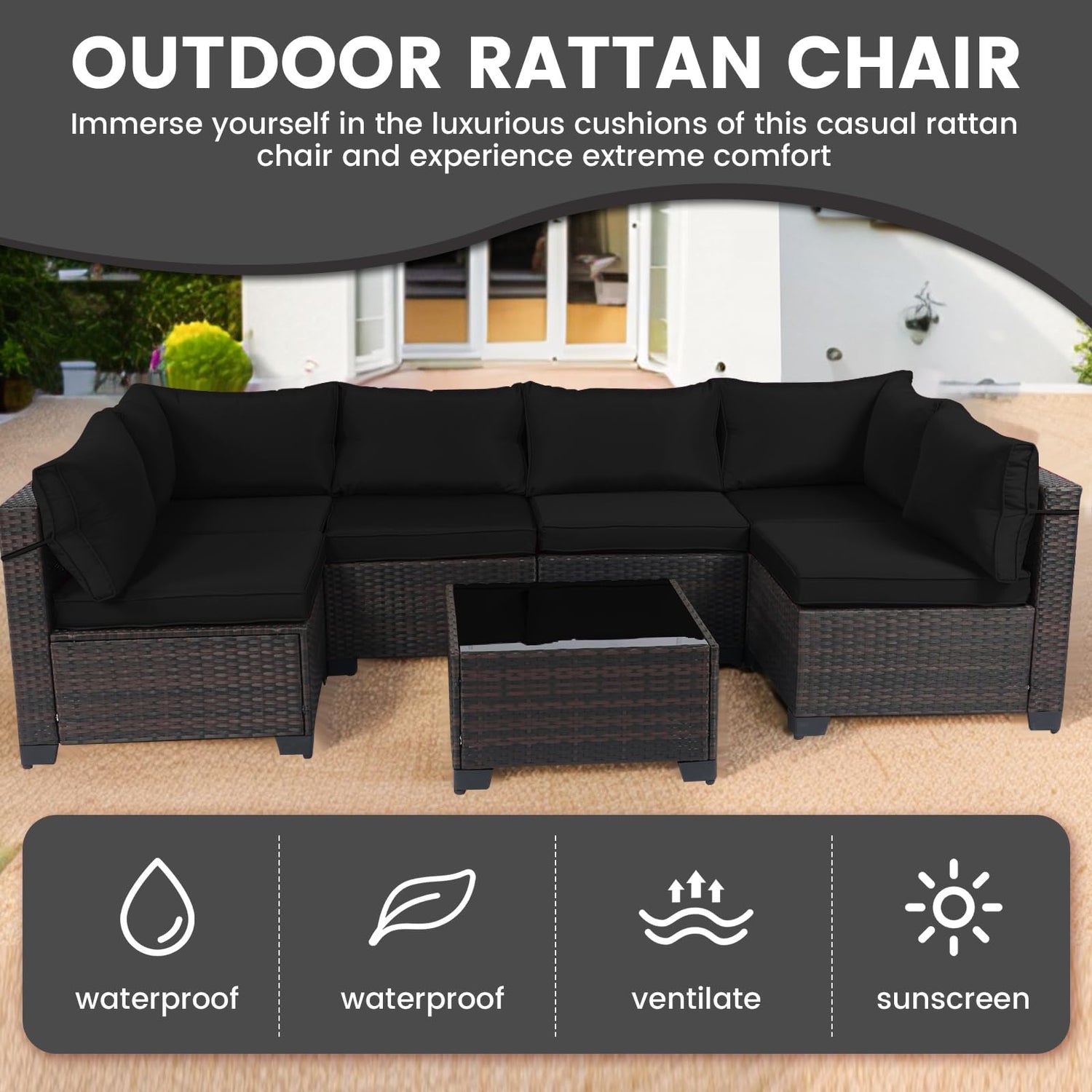 LEVELEVE 7 Pieces Outdoor Patio Furniture Sets,Rattan Conversation Sectional Set,Manual Weaving Wicker Patio Sofa with Tea Table