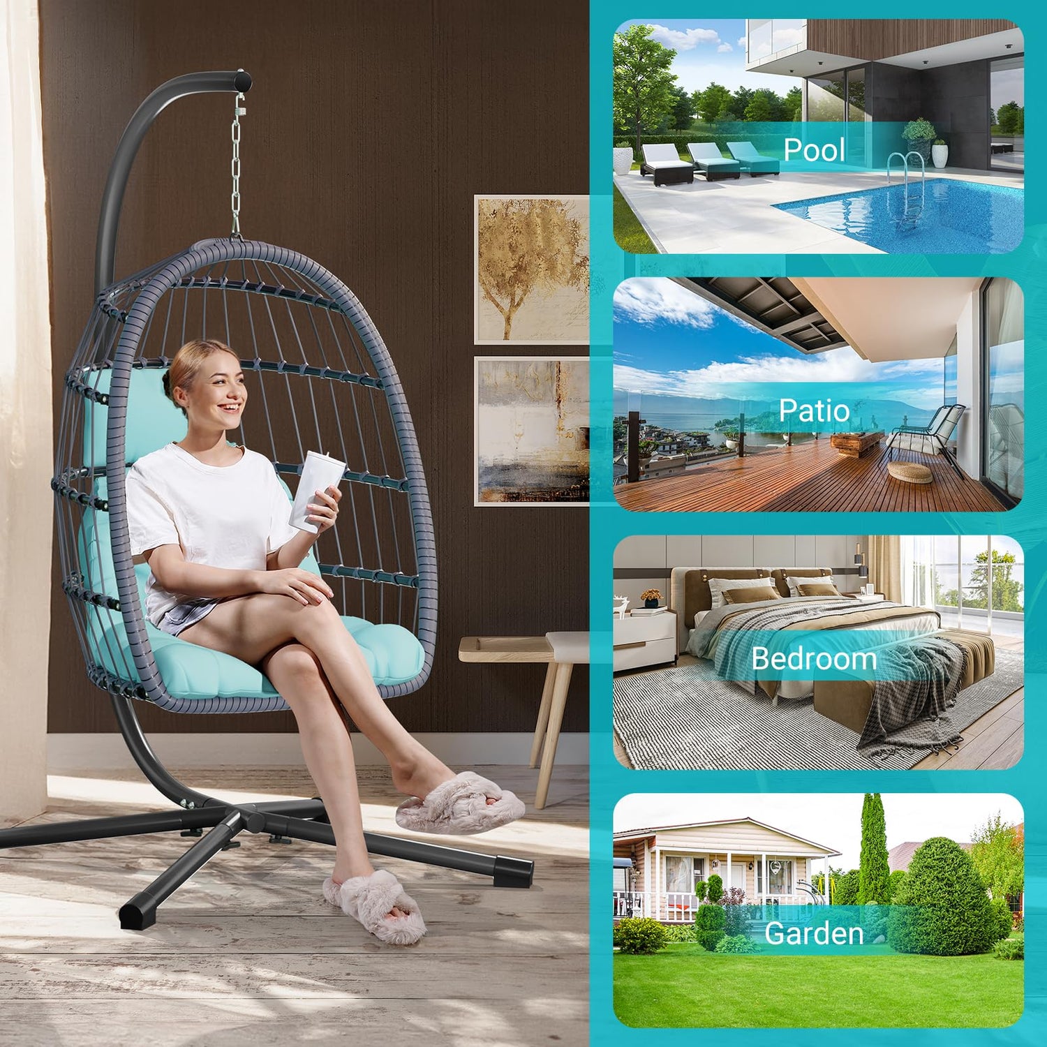 - 【Versatile Use】:This outdoor egg chair swing can be used on balconies, in bedrooms, on decks, or lawns, making it a great choice for both indoor and outdoor spaces.