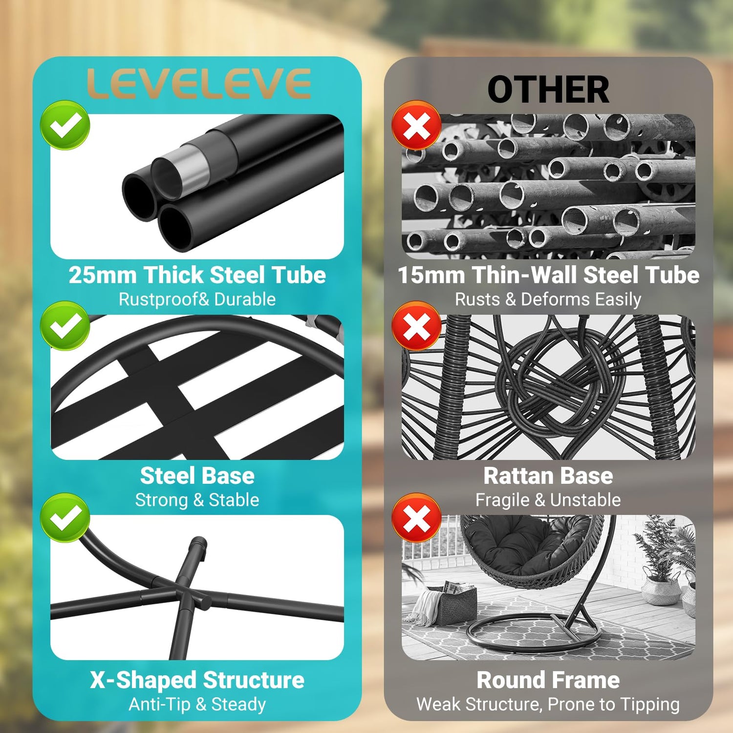 LEVELEVE Egg Chair with Stand,Patio Rattan Wicker Hanging Swing Egg Chair Hammock Chair for Bedroom Porch Garden,Thickened Aluminum Alloy Steel Frame and UV Resistant Cushion,350LBS Capacity