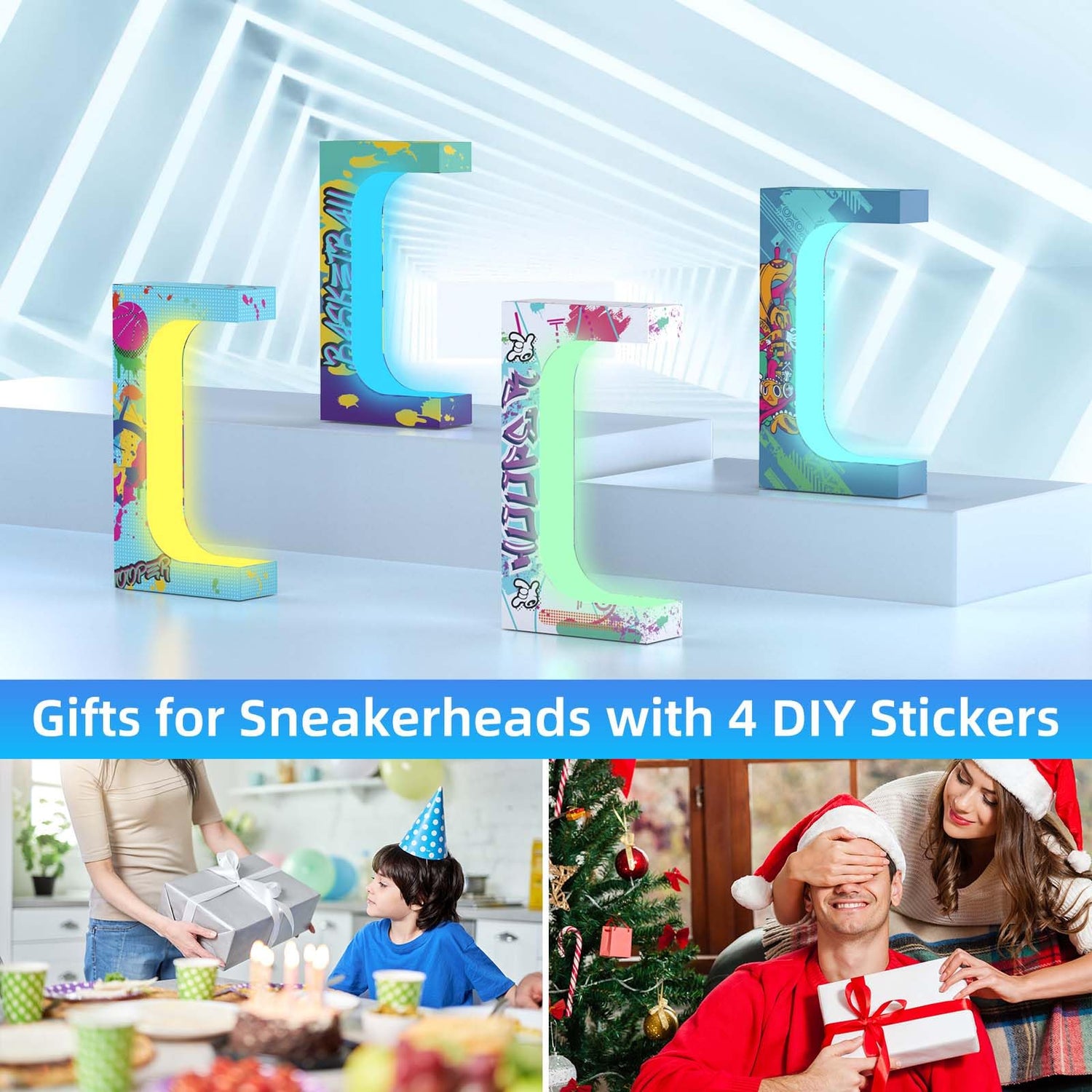 • 【Built-in 16 Colors RGB Light】Our floating sneaker stand boasts customizable LED lighting with 16 RGB colors. Control via included remote control to select fixed hues or dynamic light patterns, creating museum-grade exhibition effects. Transform any space into a professional shoe display floating gallery.