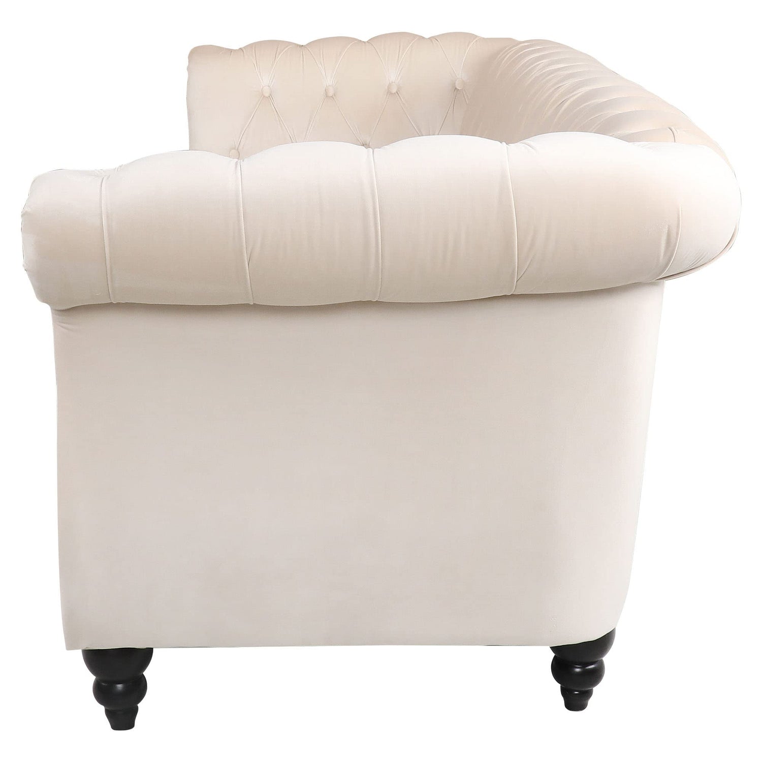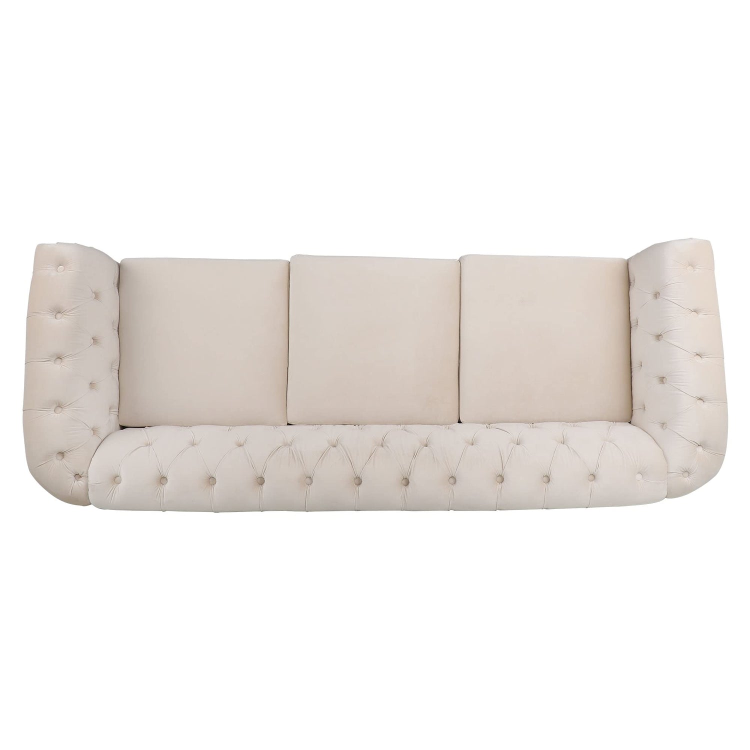 LEVNARY Velvet Chesterfield Sofa, Classic Tufted Upholstered Couch, Modern 3 Seater Couch Long Settee Furniture with Tufted Back for Living Room Office (Beige)