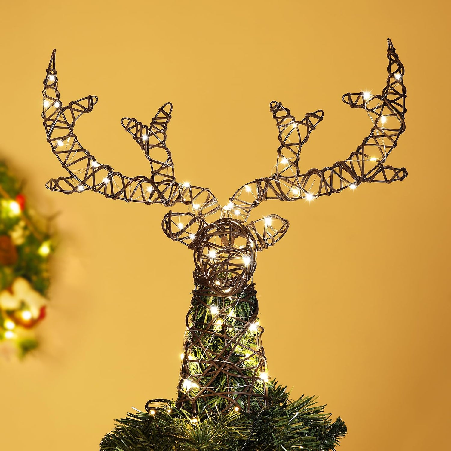 - 【Perfect Gift Choice】With its exquisite appearance, this lighted tree topper is perfect as a Christmas gift for your families, friends or lovers, etc. Let the meaningful reindeer convey your warm love! Height: 15.7 in/ 40 cm; Width: 16.3 in/ 43 cm; Base diameter: 4.53 in/ 11.5 cm.