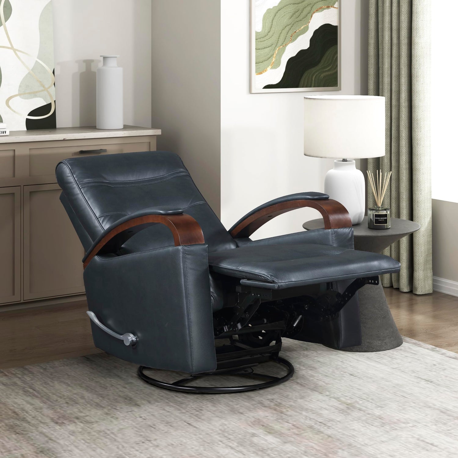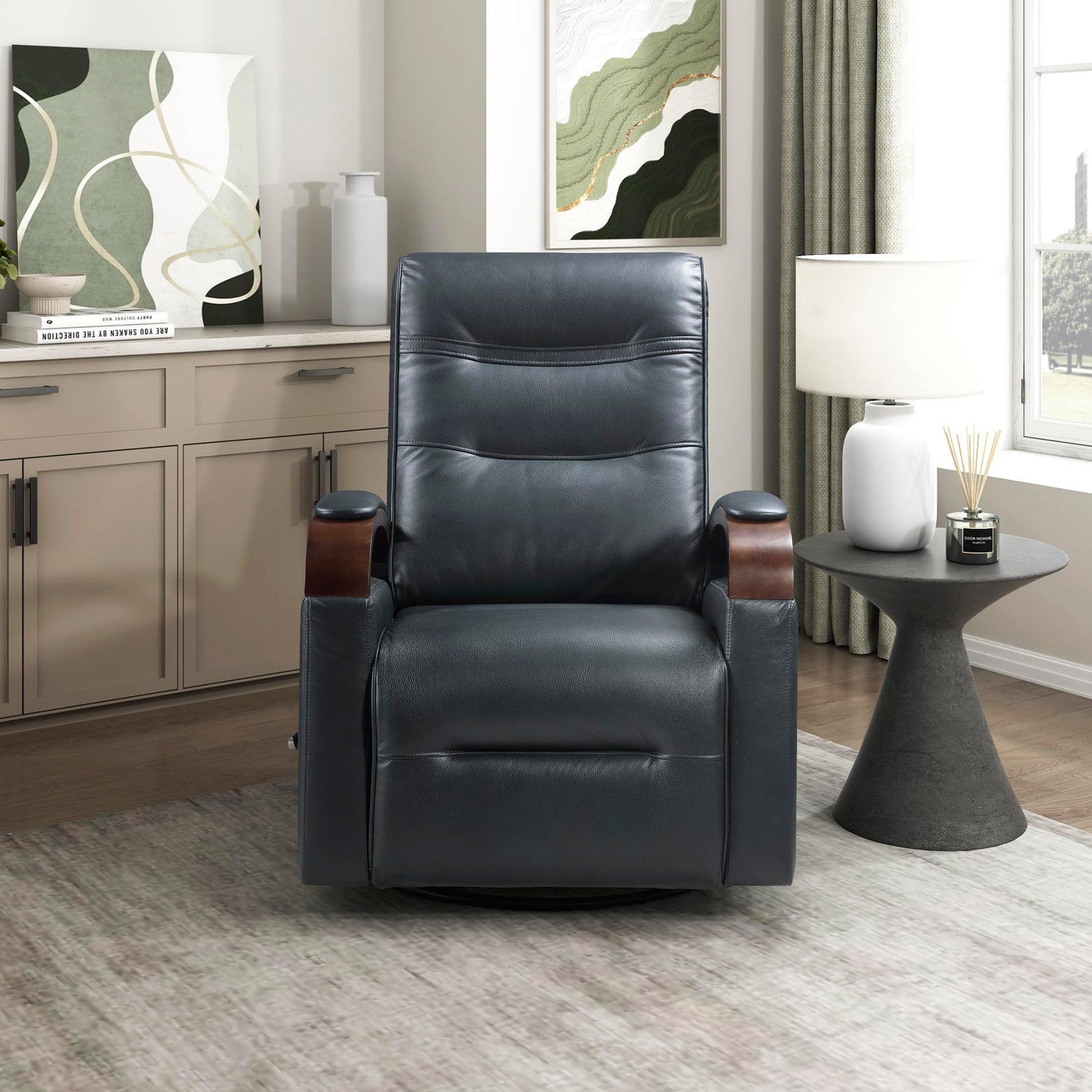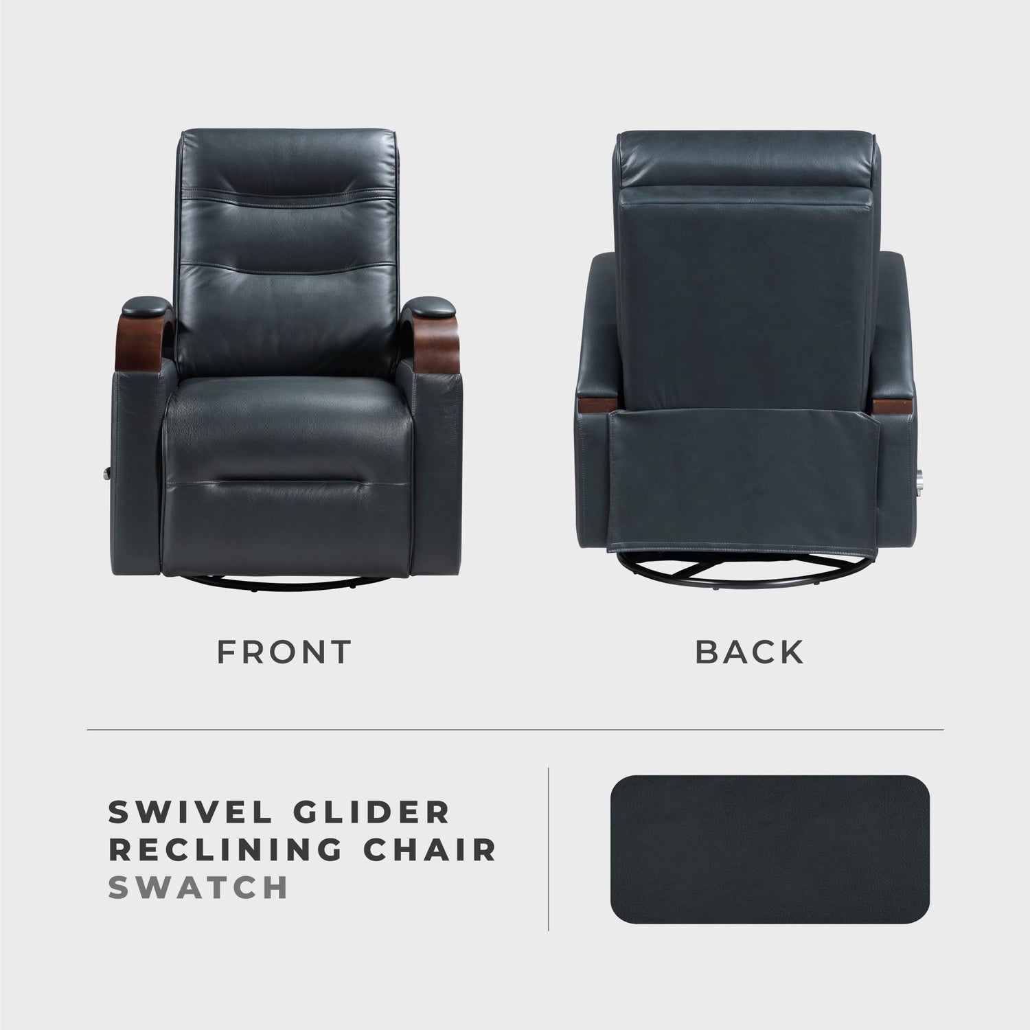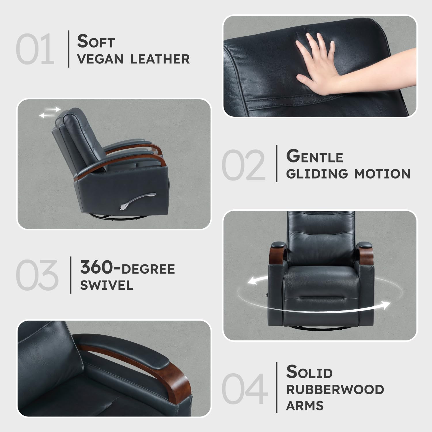 Lexicon 360 Degree Swivel Glider Reclining Chair, Breathable Faux Leather Manual Recliner, Comfy Nursery Glider Recliner, Swivel Reclining Chair for Living Room/Office/Bedroom/Apartment, Dark Blue