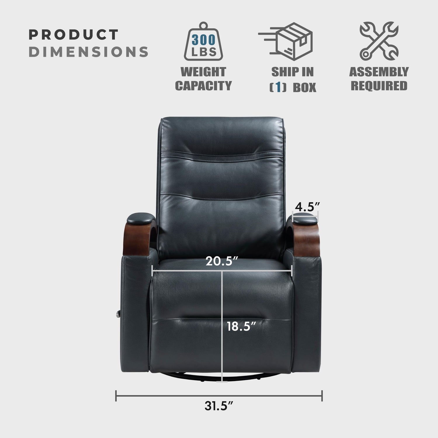 Details: Experience the ultimate in comfort and functionality with this swivel glide recliner, designed to elevate your relaxation game. Featuring a sturdy plywood frame with a metal-reinforced seat, it offers exceptional support and durability. The plush foam padding over pocket coils delivers superior comfort, while the breathable faux leather upholstery adds a touch of sophistication and easy maintenance. Effortlessly recline with the pull-handle mechanism, enjoy a smooth gliding motion, or rotate freely with the 360-degree swivel-perfect for dynamic living spaces. Finished with solid rubberwood arms in a warm light brown tone, this recliner is as stylish as it is soothing.