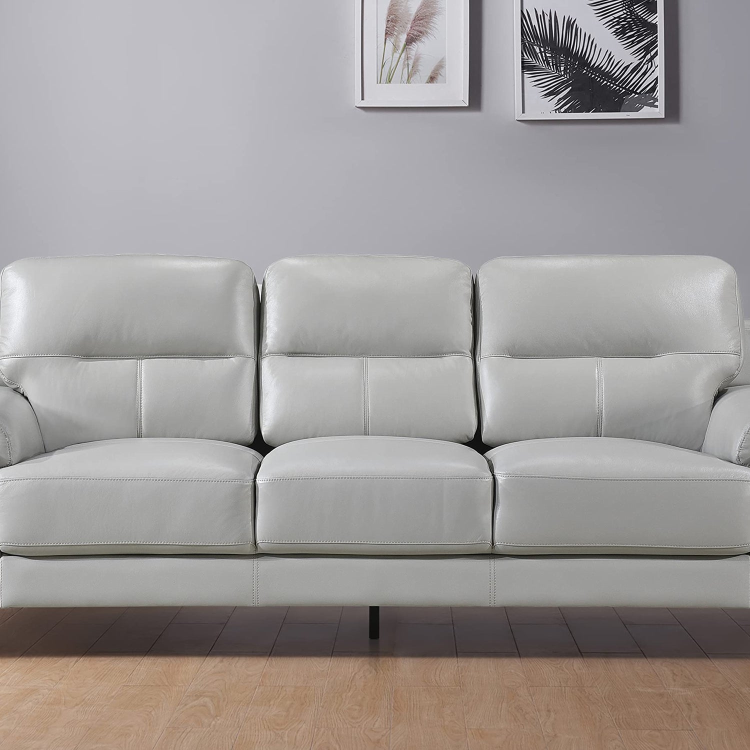 Lexicon Leather Couch, Modern Couch Sofa, Top Grain Leather Sofa, Oversized Sofa for Living Room, Bedroom, Office, Apartment, 3-Seater Couches, Silver Gray