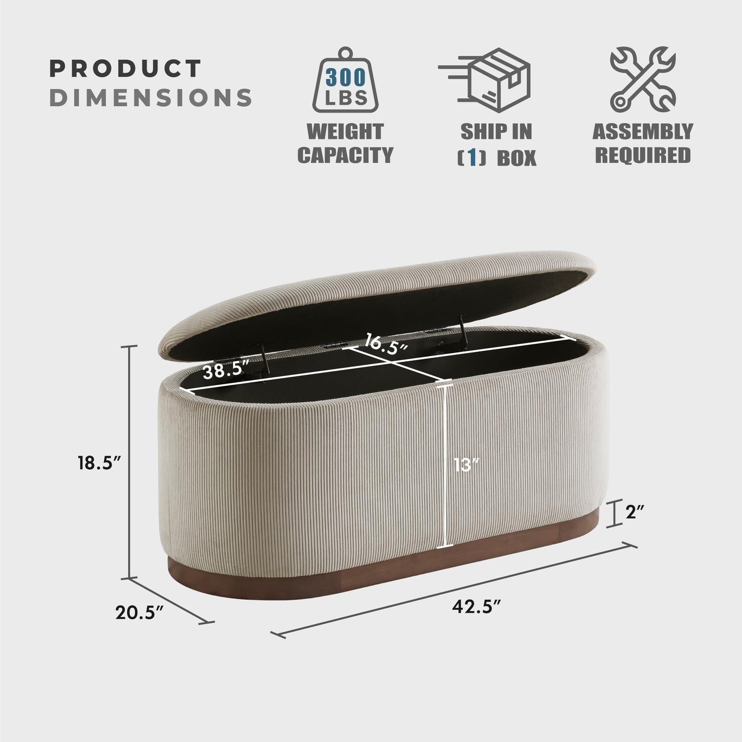 Lexicon Lift Top Storage Bench, Corduroy Fabric Upholstered Oval Entryway Bench, Modern Striped Storage Chest for Entryway/Living Room/Bedroom, Taupe